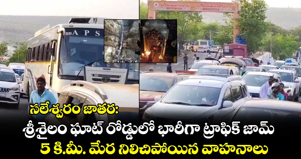 ముందుగా సలేశ్వరం జాతర ముగించుకుని ఆ తర్వాత శ్రీశైలం ఆలయ దర్శనానికి భక్తులు వెళ్లడం ఆనవాయితీ. ఇందులో భాగంగా సలేశ్వరం నుంచి శ్రీశైలం వెళుతున్న క్రమంలో భారీ ఎత్తున ట్రాఫిక్ జామ్ అయ్యింది. సుమారు 5 కిలోమీటర్ల మేర వాహనాలు నిలిచి పోవడంతో భక్తులు తీవ్ర ఇబ్బందులకు గరవుతున్నారు. పోలీసులు ట్రాఫిక్ క్లియర్ చేసే ప్రయత్నం చేస్తు్న్నారు.