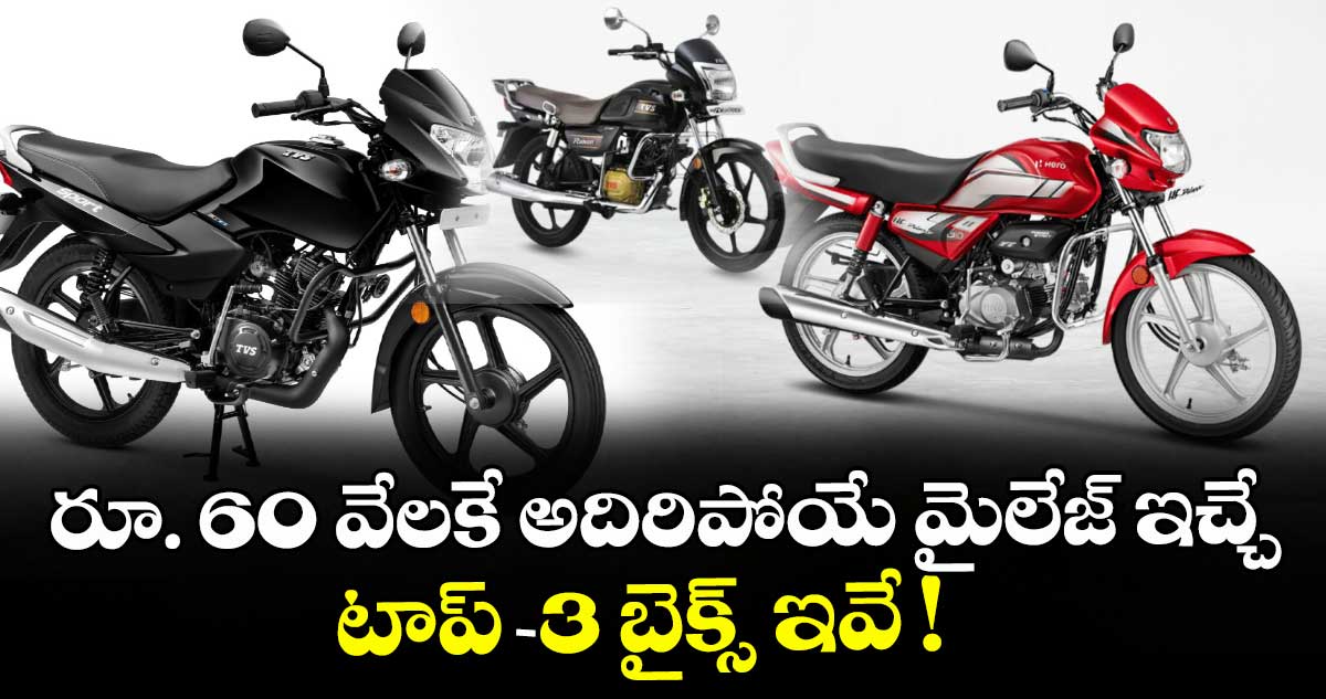 మీరు తక్కువ ధర ఉండి, పెట్రోల్ ఖర్చు తగ్గించే మంచి బైక్ కోసం చూస్తున్నారా..? అయితే 100-110cc బైక్లు మీకు కరెక్ట్ ఛాయిస్. ఈ రోజుల్లో పెట్రోల్ రేట్లు పెరుగుతున్న నేపథ్యంలో, లీటరుకు 70 కి.మీ మైలేజ్ ఇచ్చే బైక్ ఉంటే జేబుకు చాలా రిలీఫ్ లభిస్తుంది. అయితే రూ. 60 వేలలోపు ధరలో మూడు బెస్ట్ బైక్స్ అప్షన్స్ గురించి మీకోసం....