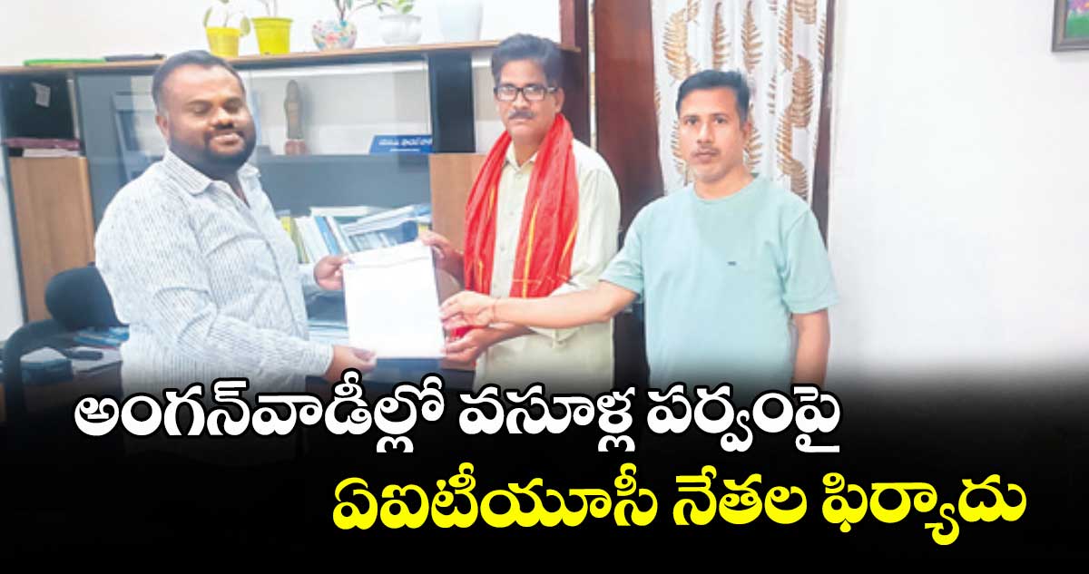 తాజాగా ఉన్నతాధికారి కూతురి పెండ్లి కోసం రూ.15లక్షలు టార్గెట్ పెట్టి మరీ సిబ్బంది నుంచి వసూలు చేసినట్లు ఆరోపించారు. ఏటా మార్చి ముందు ఐటీ చెల్లించాల్సి ఉంటుందని, ఐటీ పత్రాలు సమర్పించేందుకు ఒక్కో ఉద్యోగి సుమారు రూ. 10 వేలు ఇవ్వాలని ఉన్నతాధికారి డిమాండ్ చేశారన్నారు. విచారణ చేసి సదరు అధికారులపై చర్యలు తీసుకోవాలని ఏఐటీయూసీ నేతలు వెన్న మహేశ్, కిరణ్, తదితరులు కోరారు. దీనిపై ఐసీడీఎస్ ఇన్చార్జి పీడీ రాజ్కుమార్ మాట్లాడుతూ అంగన్వాడీ టీచర్లు, ఆయాల నుంచి అక్రమంగా వసూలు చేసినట్లు తన దృష్టికి రాలేదని, తనకు ఎలాంటి ఫిర్యాదు అందలేదన్నారు.