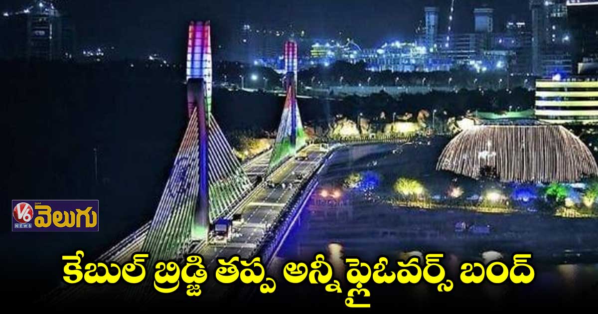 సైబరాబాద్ పరిధిలో ఉన్న అన్ని ఫ్లై ఓవర్లను రాత్రి 11 గంటల నుండి ఉదయం 5 గంటల వరకు క్లోజ్చేయనున్నారు. శిల్పా లేఅవుట్ ఫ్లై ఓవర్, గచ్చిబౌలి ఫ్లై ఓవర్, బయోడైవర్సిటీ ఫ్లై ఓవర్ 1,2, షేక్పేట, మైండ్స్పేస్, రోడ్ నెం.45 ఫ్లై ఓవర్, సైబర్ టవర్స్ ఫ్లై ఓవర్, జేఎన్టీయూ ఫ్లై ఓవర్, కైత్లాపూర్ ఫ్లైఓవర్, బాబు జగ్జీవన్ రాం ఫ్లైఓవర్(బాలానగర్)ను క్లోజ్ చేయనున్నారు. ఈ రూట్లలో ట్రావెల్ చేసే వెహికల్స్ను, వాకర్స్ ను ఫ్లై ఓవర్ల పైకి అనుమతించరు.