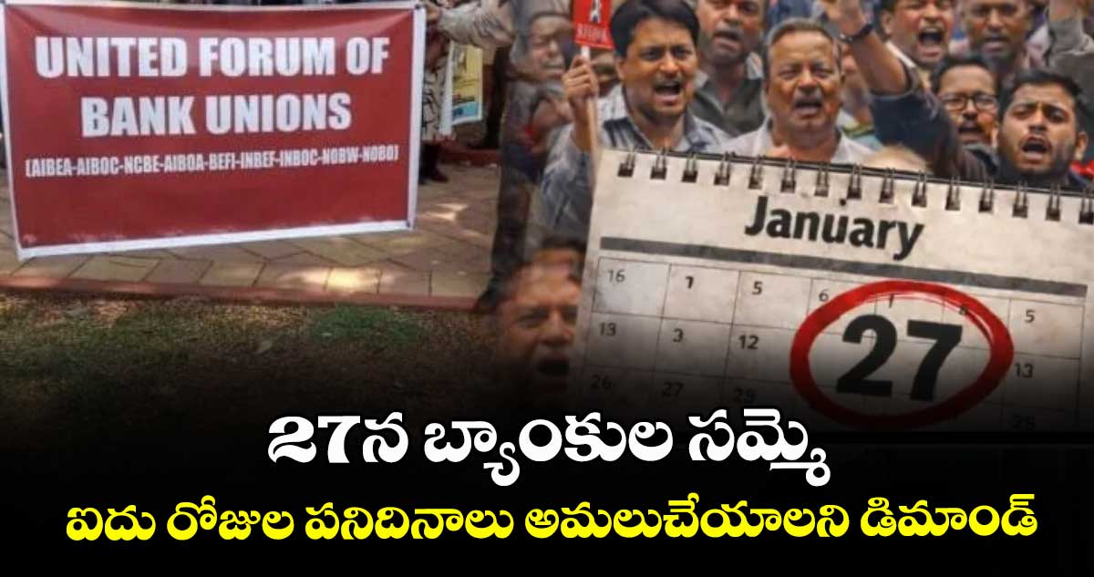 పంజాగుట్ట, వెలుగు: వారానికి ఐదు రోజుల పనిదినాలు అమలు చేయాలని డిమాండ్ చేస్తూ ఈ నెల 27న బ్యాంకుల సమ్మె చేపట్టనున్నట్లు యునైటెడ్ ఫోరం ఆఫ్ బ్యాంక్ యూనియన్స్ ప్రకటించింది. సోమాజిగూడ ప్రెస్క్లబ్లో గురువారం నిర్వహించిన సమావేశంలో ఫోరం కన్వీనర్ ఆంజనేయ ప్రసాద్ మాట్లాడారు.