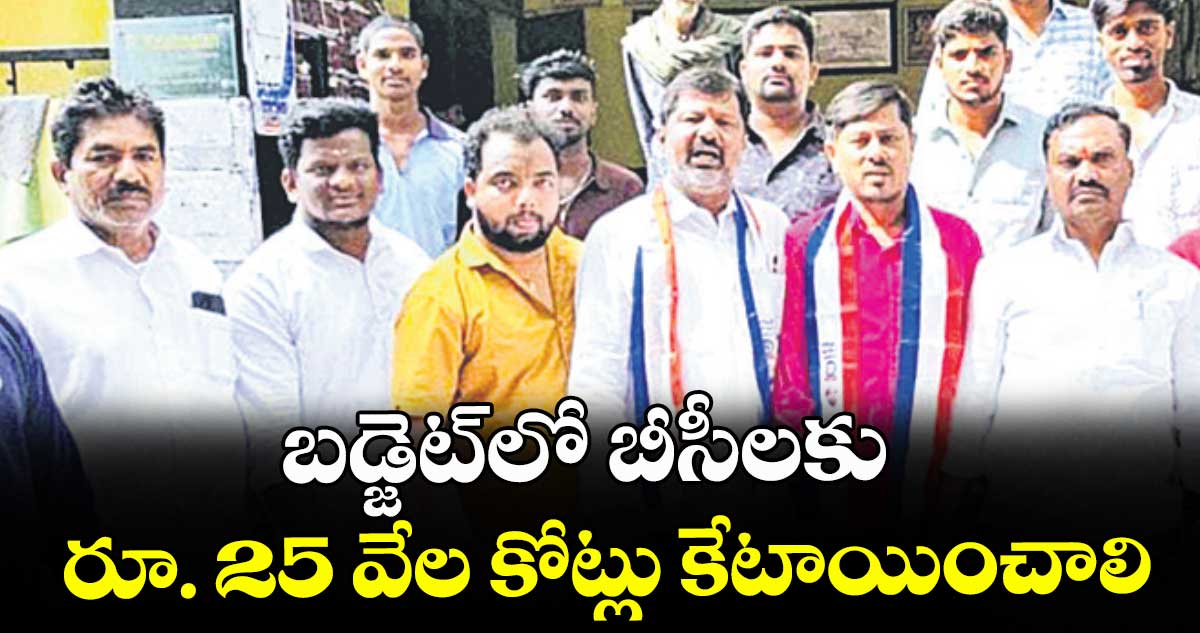 ముషీరాబాద్, వెలుగు: బడ్జెట్లో బీసీలకు రూ. 25 వేల కోట్లు కేటాయించాలని బీసీ నేతలు డిమాండ్ చేశారు. గురువారం విద్యానగర్ బీసీ భవన్లో 14 బీసీ సంఘాల ముఖ్య నాయకుల సమావేశం జరిగింది. నేతలు అనంతయ్య , రాజేందర్, నీల వెంకటేశ్, సాయిబాబా తదితరులు మాట్లాడుతూ.. గత రెండేండ్లుగా రాష్ట్రంలో బీసీ సంక్షేమం, అభివృద్ధి కుంటుపడిందన్నారు.