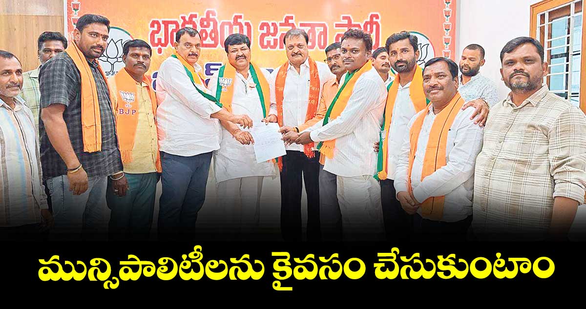 బోధన్, వెలుగు : జిల్లాలోని మున్సిపాలిటీలను కైవసం చేసుకుంటామని, బోధన్లో బీజేపీ జెండా ఎగరడం ఖాయమని బీజేపీ జిల్లా అధ్యక్షుడు దినేశ్కులాచారి అన్నారు. సోమవారం బోధన్లోని ఎంపీఆర్ ఆఫీస్లో బీజేపీ అభ్యర్థులకు బీఫాంలు అందజేసి మాట్లాడారు. ప్రజాధనాన్ని దోచుకున్న బీఆర్ఎస్ను, ఇచ్చిన హామీలను నెరవేర్చని కాంగ్రెస్లకు రాబోవు రోజుల్లో ప్రజలు తగిన గుణపాఠం చెబుతారని విమర్శించారు. కేంద్ర ప్రభుత్వ సంక్షేమ పథకాలను ప్రజలకు వివరిస్తామన్నారు.