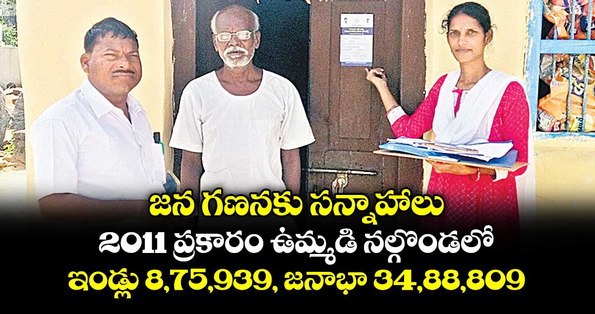 దేశవ్యాప్తంగా 2011లో16వ జనగణన జరిగింది. ఆ తర్వాత 2021లో జరగాల్సి ఉన్నా.. కరోనా కారణంగా జరగలేదు. ఇప్పుడు తాజాగా నిర్వహించడానికి ఏర్పాట్లు చేస్తున్నారు. 2011లో నిర్వహించిన లెక్కల ప్రకారం ఉమ్మడి నల్గొండ జిల్లాలో 8,75,939 ఇండ్లు ఉన్నాయి. 34,88,809 జనాభా కలిగి ఉంది. ఇందులో చిన్నారుల సంఖ్య 3,71,735 కాగా.. ఎస్సీలు 6,37,385 ఉండగా ఎస్టీలు 3,94,279 మంది ఉన్నారు. చదువుకున్న వారు 20.01 లక్షల మంది ఉండగా చదువురాని వారు 17.41 లక్షల మంది ఉన్నారు. ఉద్యోగ, ఉపాధి రంగాల్లో 17.41 లక్షల మంది ఉండగా నాన్ వర్కింగ్లో 17.47 లక్షల మంది ఉన్నారు.