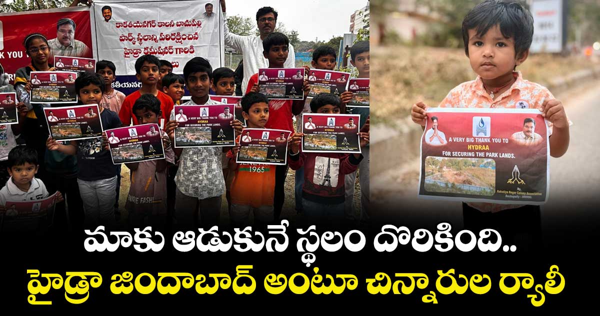 ఇటీవల బాచుపల్లి లో 600 గజాలు, 1500 గజాల రెండు పార్కులకు రక్షణ కల్పించింది హైడ్రా. ఈ సందర్భంగా కాకతీయ కాలనీ చిన్నారులు ప్లకార్డులతో చిన్నారులు నినాదాలు ఇస్తూ భారీ ర్యాలీ నిర్వహించారు.