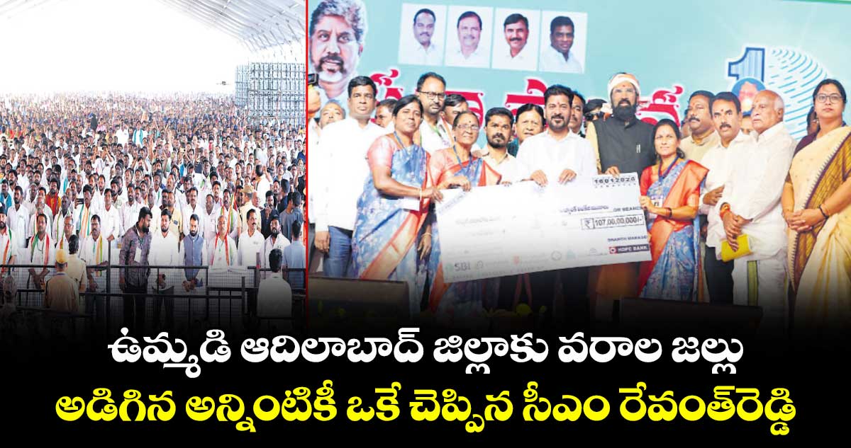 నిర్మల్, వెలుగు : ఉమ్మడి ఆదిలాబాద్జిల్లాలకు సీఎం రేవంత్ రెడ్డి వరాల జల్లు కురిపించారు. స్థానిక ప్రజాప్రతినిధులు అడిగిన అన్నింటికీ సీఎం ఓకే చెప్పడంతో సంబురాల్లో మునిగిపోయారు. కాంగ్రెస్ప్రజాప్రతినిధులే కాకుండా బీజేపీ వాళ్లు చేసిన సూచనలపై సీఎం సానుకూలంగా స్పందించడం ప్రాధాన్యతను సంతరించుకుంది. బహిరంగ సభావేదికపై బీజేపీ ఎమ్మెల్యే ఏలేటి మహేశ్వర్రెడ్డి పలు అంశాలను సీఎం రేవంత్రెడ్డి దృష్టికి తీసుకెళ్లడమే కాకుండా వీటిపై స్పష్టమైన ప్రకటన చేయాలని కోరారు.