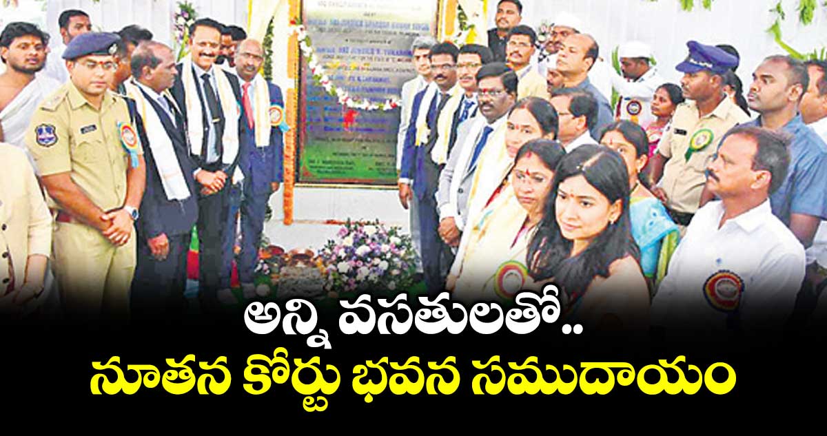 నూతన కోర్టు భవన సముదాయం అన్ని కోర్టుల నిర్వహణకు సరిపోయే విధంగా ఉంటుందని వెల్లడించారు. జిల్లా కోర్టులో 13 వేల కేసులు పైగా కేసులు పెండింగ్ లో నున్నట్లు తెలిపారు. పెండింగ్ కేసుల పరిష్కారానికి ప్రత్యేక శ్రద్ద చూపాలని సూచించారు. ఈ నూతన కోర్టు భవన నిర్మాణం ప్రజల్లో న్యాయవ్యవస్థపై విశ్వాసాన్ని పెంచుతుందని హైకోర్టు న్యాయమూర్తి కం జస్టిస్ ఎన్ తుకారాంజీ పేర్కొన్నారు. అనంతరం దివ్యాంగ డిగ్రీ, ఉన్నత విద్య అభ్యసిస్తున్న విద్యార్థులకు ల్యాప్ టాప్ లు, బ్యాటరీ వీల్ చైర్లు పంపిణీ చేశారు. జస్టిస్ కె లక్ష్మణ్, జస్టిస్ విజయసేన్ రెడ్డి పాల్గొన్నారు.