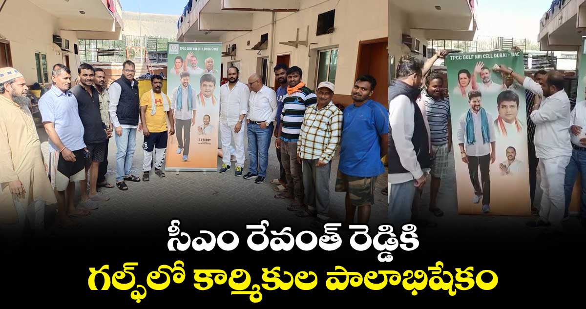 గల్ప్ కార్మికుల సంక్షేమ శాఖ ఏర్పాటు చేస్తున్నట్లు సీఎం రేవంత్ రెడ్డి, మంత్రి శ్రీధర్ బాబు ప్రకటించటంపై గల్ఫ్ కార్మికులు హర్షం వ్యక్తం చేశారు దుబాయ్ లోని సోనాపూర్ లేబర్ క్యాంప్ లో సీఎం రేవంత్, శ్రీధర్ బాబు చిత్రపటాలకు పాలాభిషేకం చేశారు కార్మికులు. తెలంగాణ రాష్ట్రం వచ్చిన తర్వాత.. కేసీఆర్ పాలనలో మాటలు మాత్రమే విన్నామని.. గల్ఫ్ బాధితులు, కార్మికులను పట్టించుకున్న పాపాన పోలేదన్నారు కార్మికులు.