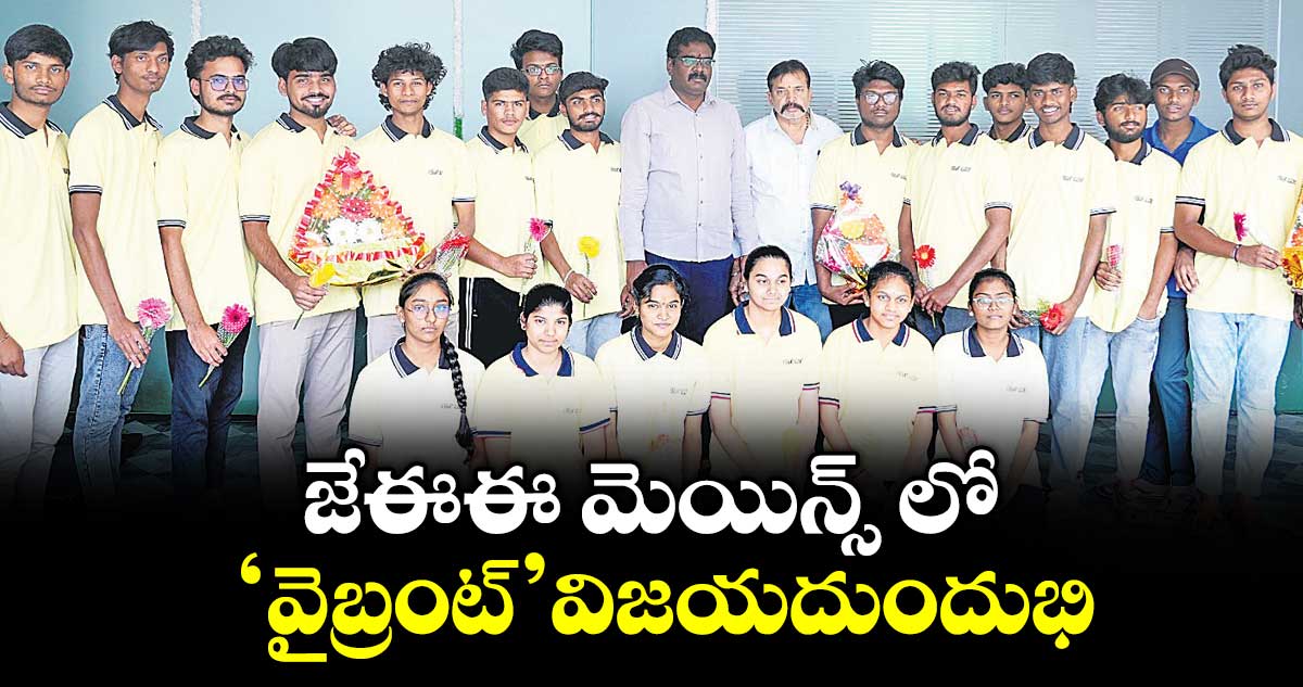 హనుమకొండ సిటీ, వెలుగు: జేఈఈ మెయిన్స్ సెషన్ ఫలితాల్లో హనుమకొండ వైబ్రంట్ అకాడమీ విజయదుందుభి మోగించింది. సోమవారం విడుదలైన ఫలితాల్లో వైబ్రంట్ విద్యార్థులు సచ్ కల్స 99.99 పర్సంటైల్, డీ.హేమంత్ 99.24 పర్సంటైల్ సాధించారు. వీరితోపాటు పెద్దపల్లి చరణ్ తేజ 96.81 పర్సంటైల్, కొండమల్ల రామ్చరణ్ 94.94 పర్సంటైల్, సోలేంక సిద్ధార్థ 94.35 పర్సంటైల్, జ్ఞానశ్రీ 93.46 పర్సంటైల్, వెల్దండి సాయిచంద్ర 92.25 పర్సంటైల్ మరియు 48 మంది విద్యార్థులకు 90.00 పర్సంటైల్ పైగా సాధించగా వారిని మంగళవారం అకాడమీ డైరెక్టర్ చిట్టేటి రాజేందర్ రెడ్డి, ప్రిన్సిపల్ శేషుకుమార్ అభినందించారు.