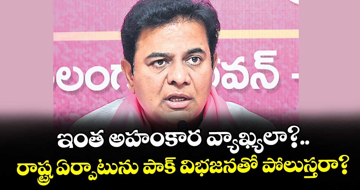 హైదరాబాద్, వెలుగు: తెలంగాణ రాష్ట్ర ఏర్పాటును పాకిస్తాన్ విభజనతో పోల్చడం అత్యంత మూర్ఖత్వమని, ఇది బీజేపీ అహంకారానికి పరాకాష్ట అని బీఆర్ఎస్ వర్కింగ్ ప్రెసిడెంట్ కేటీఆర్ ఫైర్అయ్యారు. పార్లమెంటు సాక్షిగా బీజేపీ ఎంపీ తేజస్వి సూర్య చేసిన వ్యాఖ్యలపై గురువారం ఒక ప్రకటనలో కేటీఆర్ తీవ్రంగా ఖండించారు. తెలంగాణ అస్తిత్వంపై బీజేపీ నేతలకు ఏమాత్రం గౌరవం లేదని, పదేపదే రాష్ట్ర ప్రజల ఆత్మగౌరవాన్ని, అమరుల త్యాగాలను అవమానించడం ఆ పార్టీకి అలవాటుగా మారిందని ఆగ్రహం వ్యక్తం చేశారు.