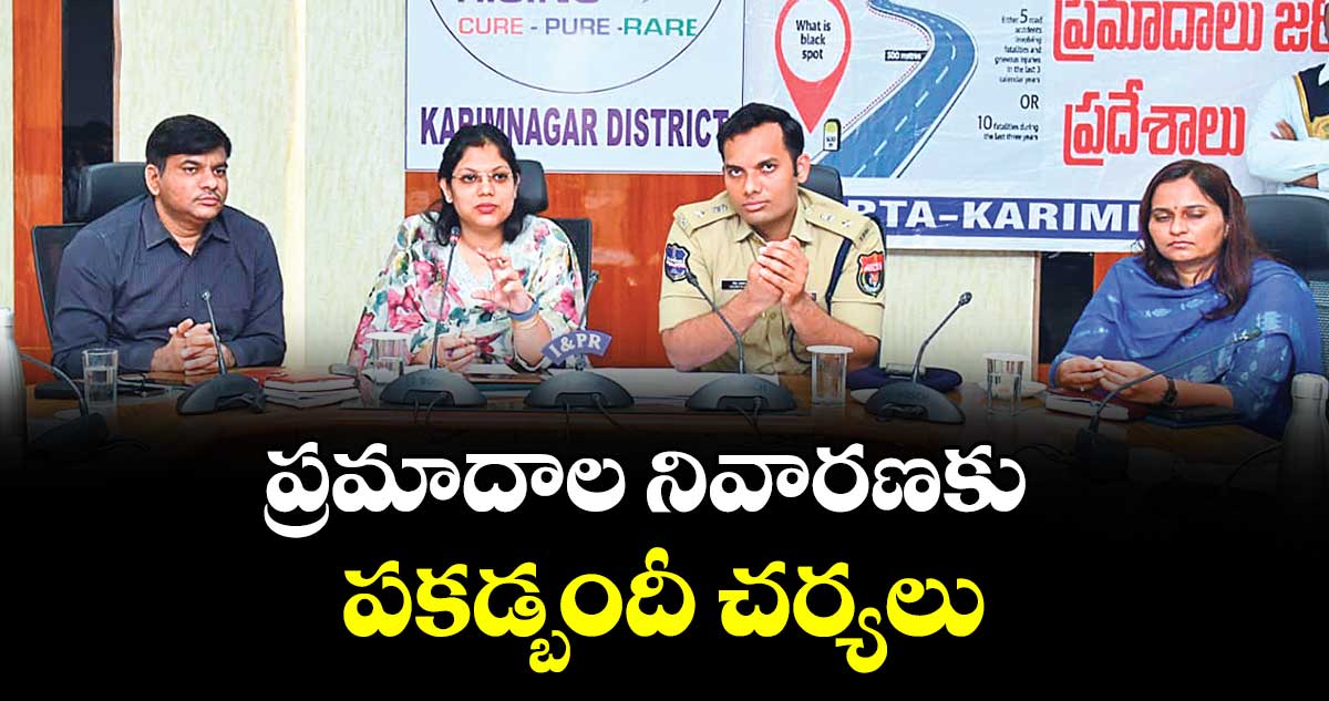 జిల్లాలో తరచూ ప్రమాదాలు జరుగుతున్న బ్లాక్ స్పాట్లను గుర్తించి రోడ్డు ప్రమాదాలు, ప్రాణ నష్టం జరగకుండా చర్యలు చేపట్టాలన్నారు. ఆర్టీసీ, ప్రైవేట్ బస్సుల్లో తప్పనిసరిగా ఫస్ట్ ఎయిడ్ కిట్ ఉండాలని అన్నారు. సీపీ గౌష్ ఆలం మాట్లాడుతూ కరీంనగర్– జగిత్యాల రోడ్డుకు ఇరువైపులా ఆరు ఫీట్ల మేర చదును చేయాలని అధికారులకు సూచించారు. సమావేశంలో మున్సిపల్ కమిషనర్ ప్రఫుల్ దేశాయ్, అడిషనల్ కలెక్టర్ అశ్విని తానాజీ వాకడే, ఆర్టీఏ మెంబర్ పడాల రాహుల్, రవాణా శాఖ డిప్యూటీ కమిషనర్ పురుషోత్తం, ఆర్టీసీ డీఎం సునంద, ఏసీపీ వెంకటస్వామి, అధికారులు పాల్గొన్నారు.