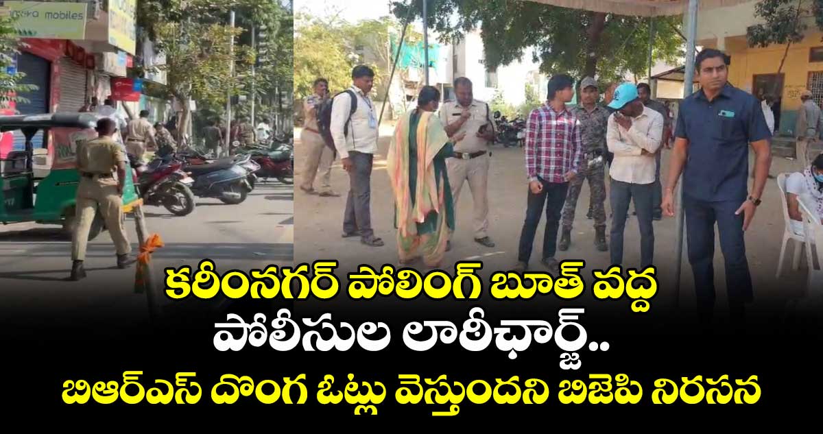 కరీంనగర్: కరీంనగర్ జిల్లా పరిషత్ కార్యాలయంలోని పోలింగ్ బూత్ వద్ద పోలీసుల లాఠీచార్జ్ చోటుచేసుకుంది. బిఆర్ఎస్ నేతలు దొంగ ఓట్లు వేస్తున్నారని అడ్డుకోడానికి వెళ్తే తమ పైన పోలీసులు దాడి చేశారని ఆరోపిస్తు బిజెపి కార్యకర్తలు నిరసనకు దిగారు. పోలీసుల తీరును నిరసిస్తూ రోడ్డుపై బీజేపీ కార్యకర్తలు బైఠాయించి ఆందోళన చేపట్టారు. BRS నేతలు 58 డివిజన్ లో దొంగ ఓట్లు వేయిస్తున్నారని తాము చెబుతుంటే పోలీసులు మాపైనే లాఠీఛార్జ్ చేయడం ఏంటని మండిపడుతూ ఆవేదన వ్యక్తం చేసారు. మరోవైపు కరీంనగర్ హుస్సేనీపురాలో 34వ డివిజన్లో దొంగ ఓట్లు వేయడానికి వచ్చారన్న అనుమానంతో ఇద్దరు యువకులను పోలీసులు పట్టుకున్నారు. అలాగే వారి ఆధార్ కార్డులను స్వాధీనం చేసుకొని పోలీస్ స్టేషన్ కు తరలించారు.