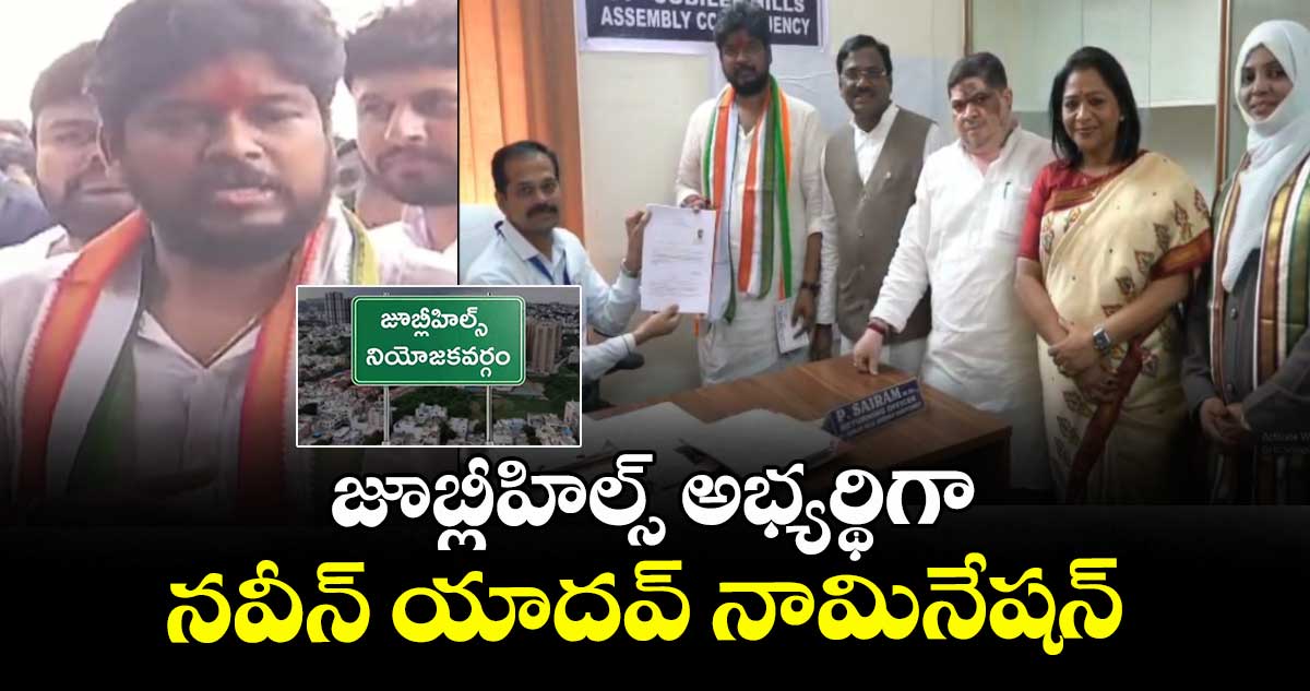 జూబ్లీహిల్స్ ఉప ఎన్నికకు కాంగ్రెస్ అభ్యర్థి నవీన్ యాదవ్ నామినేషన్ దాఖలు చేశారు. నామినేషన్ కార్యక్రమంలో మంత్రులు వివేక్ వెంకటస్వామి, పొన్నం ప్రభాకర్, మేయర్ గద్వాల విజయలక్ష్మి,రహమత్ నగర్ కార్పొరేటర్ సీఎన్ రెడ్డి పాల్గొన్నారు. అంతకు ముందు యూసుఫ్ గూడ నుంచి నామినేషన్ వేయడానికి భారీగా ర్యాలీ తీశారు. ర్యాలీకి పెద్ద సంఖ్యలో కాంగ్రెస్ కార్యకర్తలు తరలివచ్చారు.