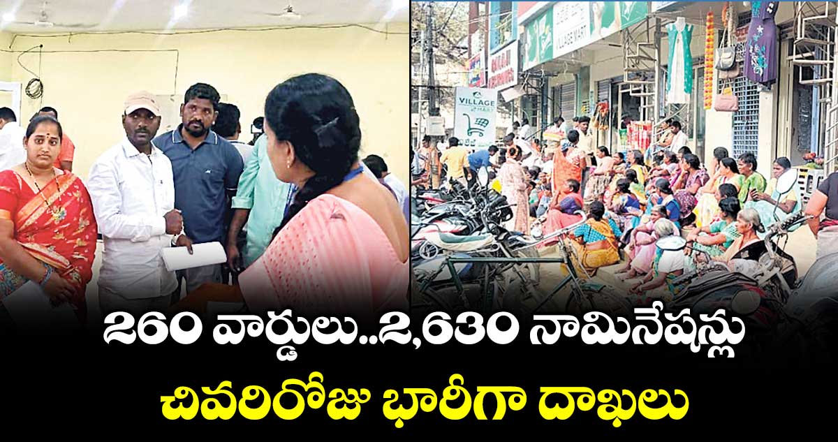 మున్సిపల్ ఎన్నికలను అన్ని ప్రధాన పార్టీలు ఛాలెంజింగ్ గా భావిస్తున్నాయి. క్షేత్రస్థాయిలో కాంగ్రెస్, బీఆర్ఎస్, బీజేపీ, ఇతర పార్టీలు, ఇండిపెండెంట్ అభ్యర్థులు కూడా పోటీ పడుతున్నారు. దీంతో పెద్ద సంఖ్యలో నామినేషన్లు దాఖలయ్యాయి. ఒక్కో వార్డుకు సగటున పది వరకు నామినేషన్లు దాఖలయ్యాయంటే పరిస్థితి ఎలా ఉందో అర్థం చేసుకోవచ్చు. ఉమ్మడి జిల్లా వ్యాప్తంగా 12 మున్సిపాలిటీల్లో మొత్తంగా 260 వార్డులు ఉండగా, శుక్రవారం వరకు 2,630 నామినేషన్లు దాఖలయ్యాయి.