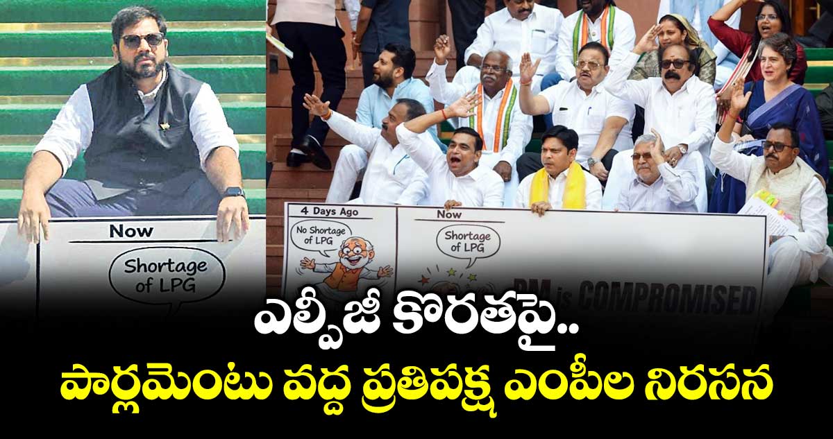 న్యూఢిల్లీ, వెలుగు: పశ్చిమాసియా సంక్షోభం నేపథ్యంలో దేశంలో ఏర్పడిన ఎల్పీజీ (వంట గ్యాస్) కొరతపై కేంద్ర ప్రభుత్వ ద్వంద్వ వైఖరిని నిరసిస్తూ ప్రతిపక్ష ఎంపీలు బుధవారం పార్లమెంట్ ప్రాంగణంలో ఆందోళన చేపట్టారు. బడ్జెట్ సమావేశాల నుంచి సస్పెండైన ఎంపీలు పార్లమెంటు ‘మక ర ద్వారం’ వద్ద ఈ నిరసన ప్రదర్శన నిర్వహించారు. 4 రోజుల క్రితం వరకు ‘‘గ్యాస్ కొరత లేదు”అని చెప్పి, ఇప్పుడు ‘‘కొరత ఉంది’’ అని ప్రభుత్వం మాట మార్చడాన్ని తప్పుబడుతూ ప్రధాని మోదీ కటౌట్లను ప్రదర్శించారు.