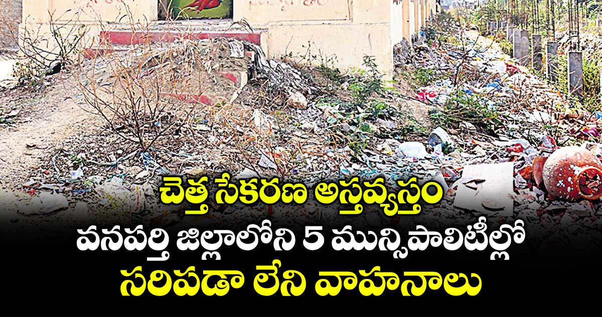 వనపర్తి, వెలుగు: జిల్లాలోని 5 మున్పిపాలిటీల్లో చెత్త సేకరణ అస్తవ్యస్తంగా మారింది. చెత్త తరలించేందుకు సరిపడా వాహనాలు లేకపోవడంతోపాటు ఉన్నవాటిలో కొన్ని రిపేర్లకు వస్తున్నాయి. ఫలితంగా పలు కాలనీల్లో చెత్త పేరుకుపోయి దుర్వాసన వెదజల్లుతోంది. వనపర్తి, అమరచింత, ఆత్మకూరు, కొత్తకోట, పెబ్బేరు మున్సిపాలిటీల్లో కలిపి రోజుకు 80 టన్నులకు పైగా చెత్త ఉత్పత్తి అవుతోంది. రోగాలబారిన పడతామని ప్రజలకు ఆందోళన చెందుతున్నారు. అధికారులు స్పందించి, చెత్తను వెనువెంటనే తరలించేందుకు చర్యలు తీసుకోవాలని కోరుతున్నారు.