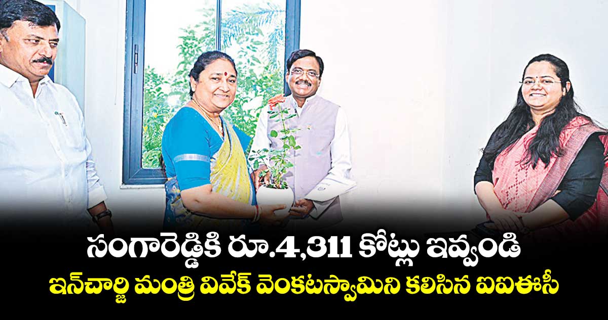 సంగారెడ్డి టౌన్, వెలుగు :సంగారెడ్డి నియోజకవర్గంలో అభివద్ధి పనులకు సంబంధించిన రూ.4,311 కోట్లు మంజూరు చేశారా చర్యలు తీసుకోవాలని టీజీఐఐసీ చైర్ పర్సన్ నిర్మలరెడ్డి ఉమ్మడి మెదక్ జిల్లా ఇన్చార్జి మంత్రి వివేక్ వెంకటస్వామిని కోరారు. ఈ మేరకు నిర్మలారెడ్డి అభివృద్ధి పనులకు సంబంధించిన వినతిపత్రాన్ని మంత్రి వివేక్ కు అందజేశారు. సంగారెడ్డి, సదాశివపేట పట్టణాల్లో మంజీరా నీరు, పేదలకు ఇండ్ల స్థలాలతో పాటు మహబూబ్ సాగర్ సుందరీకరణ, ఎచ్ఎండీఏ పరిధి లోని చెరువుల అభివృద్ధి తదితర పనులు సంబంధిత శాఖల వద్ద వివిధ దశల్లో ఉన్నాయని ఆమె వివరించారు.