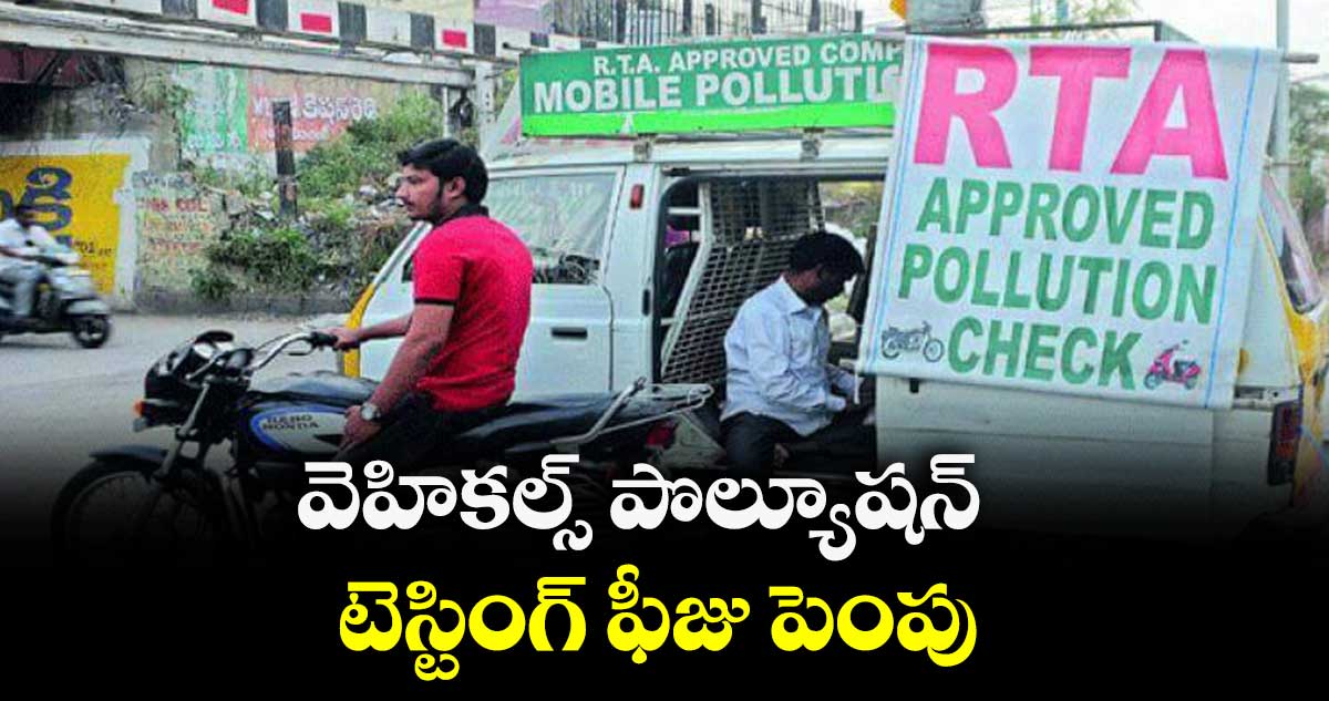 హైదరాబాద్, వెలుగు: రాష్ర్టంలో వెహికల్స్ పొల్యూషన్ టెస్టింగ్ ఫీజులను పెంచుతూ ట్రాన్స్ పోర్ట్ డిపార్ట్ మెంట్ నిర్ణయం తీసుకుంది. దీనికి సంబంధించిన జీవో ఈ నెల 8న జారీ చేయగా..మీడియాకు రవాణా శాఖ స్పెషల్ సెక్రటరీ విజయేంద్ర బోయి మంగళవారం విడుదల చేశారు. ఫీజులు పెంచాలని రవాణా శాఖ కమిషనర్ నుంచి వచ్చిన ప్రపోజల్స్ మేరకు ఈ నిర్ణయం తీసుకున్నట్లు జీవోలో ఆమె వివరించారు. ఖర్చులు, వేతనాలు పెరిగినందున చార్జీలు పెంచినట్లు తెలిపారు. 7 ఏళ్ల తరువాత ఫీజులు పెంచినట్లు ఉత్తర్వుల్లో పేర్కొన్నారు.