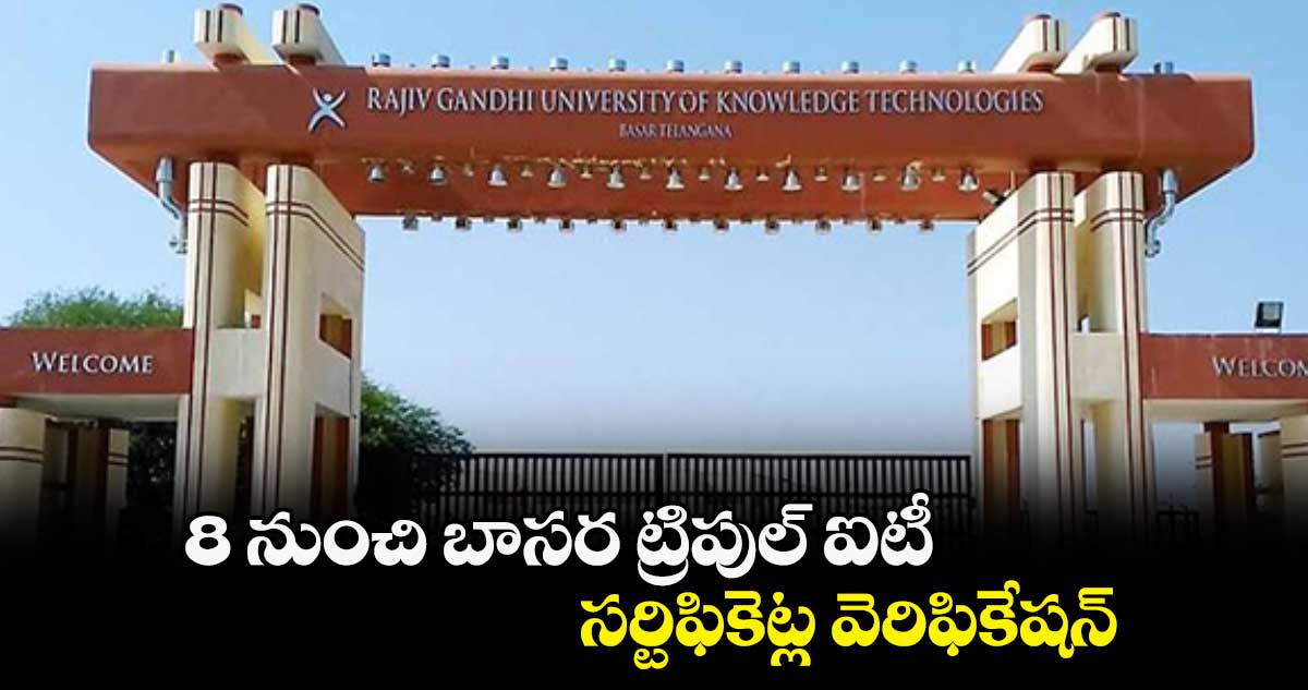 హైదరాబాద్, వెలుగు : బాసర ట్రిపుల్ ఐటీ (ఆర్జీయూకేటీ) సెలెక్టెడ్ స్టూడెంట్ల సర్టిఫికెట్ల వెరిఫికేషన్ ఈ నెల 8 నుంచి జరగనుంది. ఆరేండ్ల ఇంటిగ్రేటెడ్ బీటెక్ కోర్సులో ప్రవేశాల కోసం 1,404 మందితో సెలెక్టెడ్ లిస్టును ఇటీవల అధికారులు రిలీజ్ చేశారు. వారిలో ఒకటి నుంచి 500 మంది వరకు ఈ నెల 8న బాసరలోని వర్సిటీ క్యాంపస్లో సర్టిఫికెట్ల వెరిఫికేషన్ నిర్వహిస్తామని అధికారులు వెల్లడించారు.