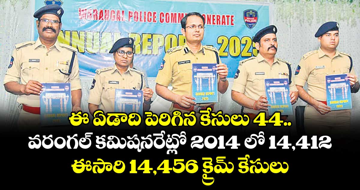 వరంగల్, వెలుగు: వరంగల్ పోలీస్ కమిషనరేట్ పరిధిలో గతేడాదితో పోలిస్తే ఈ ఏడాది క్రైమ్ రేట్ పెరిగింది. 2024 ఏడాది కంటే మైనర్లపై వేధింపులతో పాటు పోక్సో కేసులు ఎక్కువ నమోదయ్యాయి. చోరీలు పెరిగాయి. వ్యక్తిగత దాడులు, శారీరక హింస కేసులు ఎక్కువగానే నమోదయ్యాయి. యాక్సిడెంట్లు పెరుగగా, వందలాది మంది ప్రాణాలు గాలిలో కలిశాయి. దానికి మూడురెట్లు గాయాలపాలయ్యారు. ట్రాఫిక్ పోలీసులు రికార్డు స్థాయిలో జరిమానాలు విధించారు. మొత్తంగా కమిషనరేట్ పరిధిలో 2024 ఏడాదిలో 14,412 క్రైమ్ కేసులు నమోదవగా, ఈసారి 14,456 కేసులు పెరిగాయి.