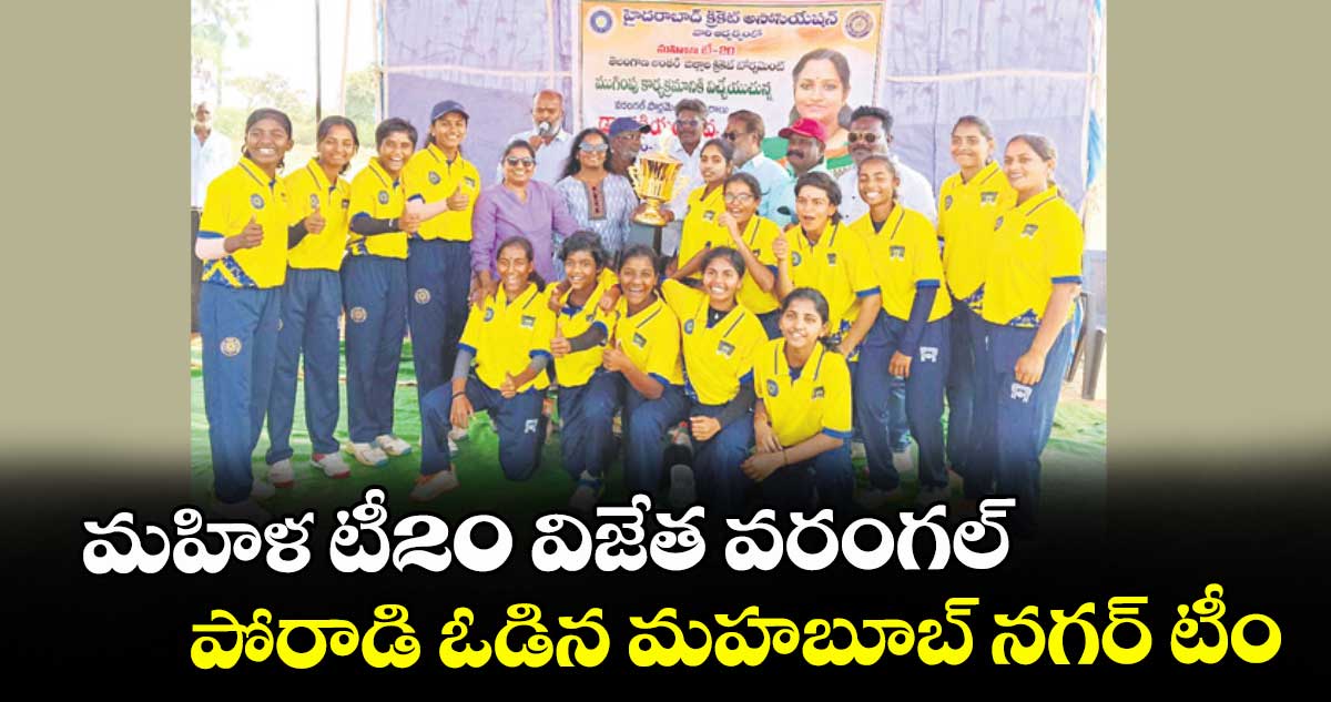 మహబూబ్నగర్ బౌలర్లు త్రివేణి మూడు, అక్షర రెండు వికెట్లతో వరంగల్ స్కోరును కట్టడి చేశారు. లక్ష్య చేధనలో తొలి బంతికే వికెట్ కోల్పోయిన మహబూబ్నగర్ జట్టు, అరియాన 30 పరుగులతో పోరాడినప్పటికీ 20 ఓవర్లలో 9 వికెట్లకు 94 పరుగులకే పరిమితమైంది. వరంగల్ బౌలింగ్లో స్పిన్నర్ అనూష 4 వికెట్లతో అద్భుతంగా రాణించగా, కృష్ణవేణి, సౌమ్య కీలక సమయాల్లో ఒత్తిడి సృష్టించారు. హెచ్సిఎ సెలెక్టర్లు హర్ష నారాయణ, కీర్తన చేతుల మీదుగా విజేతలు, రన్నరప్ జట్లకు బహుమతులు అందజేశారు. వరంగల్ జిల్లా క్రికెట్ అసోసియేషన్ ఉపాధ్యక్షులు నాజిమోద్దీన్, మాజీ కార్యదర్శి ఉదయభాను రావు, బండారి ప్రభాకర్, సదానంద యాదవ్, కుమార్ పాల్గొన్నారు.