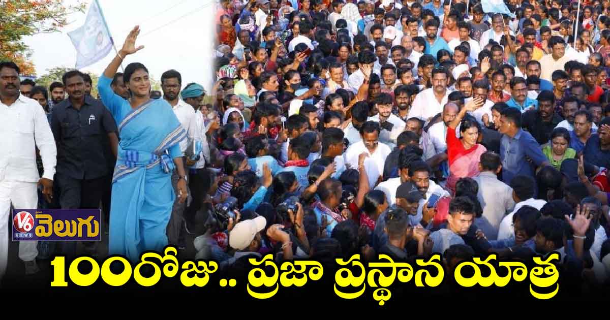 ఇవాల్టితో వైఎస్ షర్మిల ప్రజాప్రస్థాన యాత్ర వందో రోజుకు చేరుకుంది. ఖమ్మం జిల్లాలో పాదయాత్ర ముగించుకొని సూర్యాపేట జిల్లాలో అడుగుపెట్టనున్నారు షర్మిల. కోదాడ నియోజకవర్గంలో 100వ రోజు పాదయాత్ర కొనసాగించనున్నారు. సూర్యాపేట జిల్లాలో అడుగుపెడుతున్న సందర్భంగా కోదాడలో షర్మిలకు కార్యకర్తలు ఘన స్వాగతం పలకనున్నారు. బొజగూడెం, తామరబండ పాలెం మీదుగా షర్మిల పాదయాత్ర జరగనుంది.