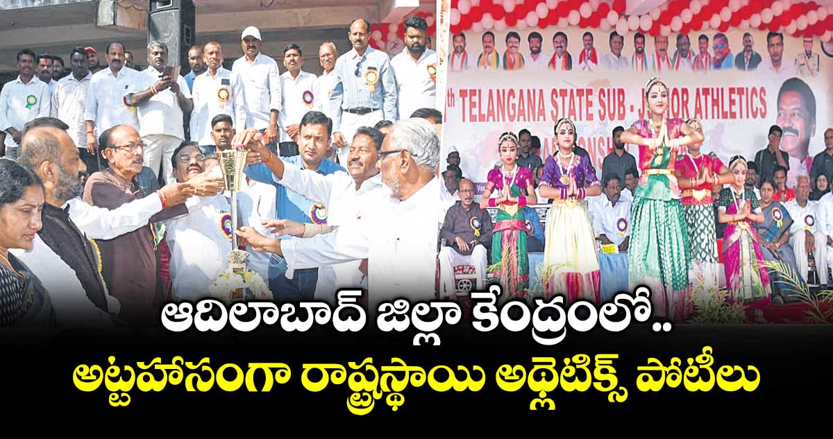 ఆదిలాబాద్, వెలుగు: ఆదిలాబాద్ జిల్లా కేంద్రంలోని ఇందిరా ప్రియదర్శిని స్టేడియంలో రాష్ట్రస్థాయి 11వ సబ్ జూనియర్ అథ్లెటిక్స్ పోటీలు ఆదివారం అట్టహాసంగా ప్రారంభమయ్యాయి. కలెక్టర్ రాజర్షి షా, ఎంపీ గొడం నగేశ్ క్రీడా జ్యోతి వెలిగించి పోటీలను ప్రారంభించారు. 33 జిల్లాల నుంచి తరలివచ్చిన క్రీడాకారుల గౌరవ వందనాన్ని అతిథులు స్వీకరించారు.