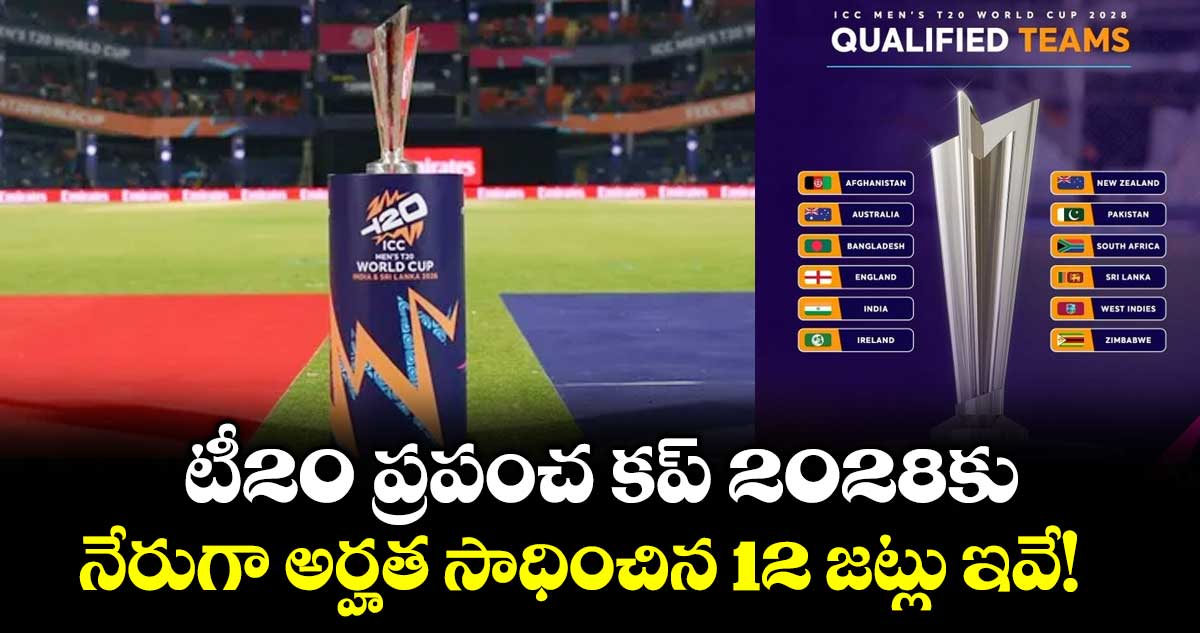 T20 World Cup 2028: టీ20 వరల్డ్ కప్ 2026లో లీగ్ మ్యాచ్ లు కంప్లీట్ కావడంతో పాటు సూపర్–8కి చేరిన జట్లు ఖరారవడంతో.. 2028లో జరిగే టీ20 ప్రపంచ కప్ 2028కు నేరుగా అర్హత సాధించిన జట్లను అంతర్జాతీయ క్రికెట్ మండలి (ఐసీసీ) అధికారికంగా ప్రకటించింది. 2028 టీ20 వరల్డ్ కప్కు సహ-ఆతిథ్య దేశాలైన ఆస్ట్రేలియా– న్యూజిలాండ్ కు ఇప్పటికే నేరుగా అర్హత సాధించినప్పటికీ.. ఇప్పుడు 2026 టీ20 వరల్డ్ కప్లో సూపర్–8కి చేరిన టీమ్స్ ఈ జాబితాలోకి వచ్చాయి.