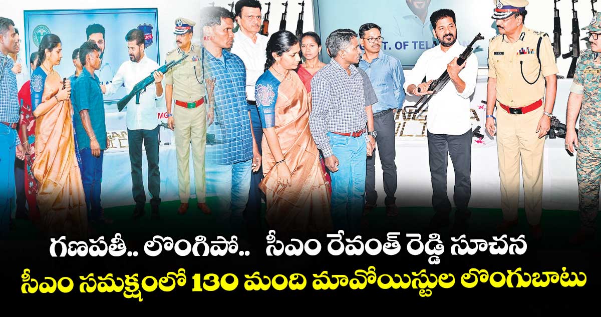 హైదరాబాద్, వెలుగు: మావోయిస్టు అగ్రనేత గణపతి సహా తెలంగాణ నుంచి అజ్ఞాతంలో ఉన్న ఏడుగురు మావోయిస్టులూ లొంగిపోయి జనజీవన స్రవంతిలోకి రావాలని సీఎం రేవంత్ రెడ్డి పిలుపునిచ్చారు. హింసతో ఏ సమస్యా పరిష్కారం కాదని, శాంతి చర్చలతోనే ప్రజా సమస్యలకు పరిష్కారం దొరుకుతుందని ఆయన సూచించారు. లొంగిపోయిన వారి ప్రాణాలకు రక్షణ కల్పించడంతో పాటు ఆరోగ్యం, పునరావాసం, సమాజంలో ఆత్మగౌరవంతో జీవించే విధంగా తమ ప్రభుత్వం బాధ్యత తీసుకుంటుందని హామీ ఇచ్చారు. మావోయిస్టు పార్టీలో వివిధ కేడర్లలో పనిచేస్తున్న మొత్తం 130 మంది శనివారం సీఎం రేవంత్ రెడ్డి సమక్షంలో లొంగిపోయారు. 124 ఆయుధాలు సహా 7 వేల బుల్లెట్లను వారు సరెండర్ చేశారు.