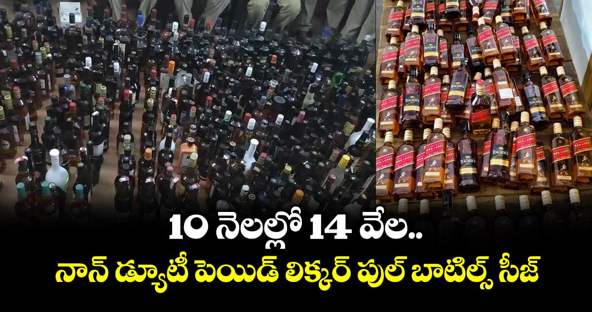 హైదరాబాద్: తెలంగాణలో పన్ను చెల్లించని మద్యం భారీగా పట్టుబడింది. 14 వేల పుల్ బాటిల్స్ను ఎక్సైజ్ శాఖ సీజ్ చేసింది. 10 నెలల్లో 14 వేల పుల్ బాటిల్స్ను ఎక్సైజ్ శాఖ సీజ్ చేసింది. ఈ మద్యం మొత్తం ఖరీదైన మద్యమే అని ఎక్సైజ్ డిపార్ట్మెంట్ స్పష్టం చేసింది.