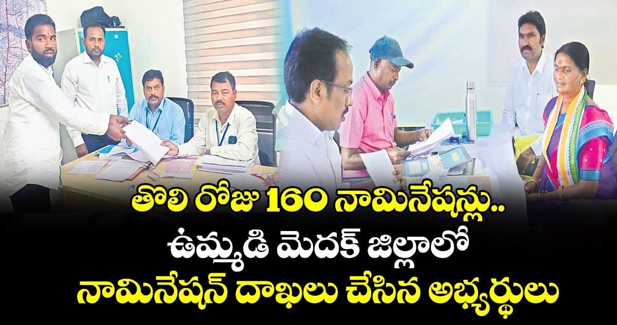 జిల్లాలో మొదటి రోజు 99 నామినేషన్లు దాఖలయ్యాయి. మొత్తం 11 మున్సిపాలిటీలు, 256 వార్డులున్నాయి. సంగారెడ్డి మున్సిపాలిటీలో కాంగ్రెస్ 13, బీఆర్ఎస్ 9, బీజేపీ 1, బీఎస్పీ 1, ఇతరులు 1, సదాశివపేటలో కాంగ్రెస్ 5, బీఆర్ఎస్ 5, బీజేపీ 4, జహీరాబాద్ లో బీఆర్ఎస్ 3, బీజేపీ 1, నారాయణఖేడ్ లో కాంగ్రెస్ 5, బీఆర్ఎస్ 3, బీజేపీ 1 ఇతరులు 1, జిన్నారంలో బీఆర్ఎస్ 2, ఇతరులు 1, గడ్డపోతారం మున్సిపాలిటీలో కాంగ్రెస్ 2, బీఆర్ఎస్ 1, గుమ్మడిదలలో కాంగ్రెస్ 3, బీజేపీ 3, అందోల్-జోగిపేటలో కాంగ్రెస్ 7, బీఆర్ఎస్ 4, బీజేపీ 7, ఇంద్రేశం మున్సిపాలిటీలో కాంగ్రెస్ 4, బీఆర్ఎస్ 1, బీజేపీ 1, ఇస్నాపూర్ లో కాంగ్రెస్ 7, బీఆర్ఎస్ 1, బీజేపీ 2 నామినేషన్లు దాఖలయ్యాయి. కోహిర్ మున్సిపాలిటీలో మొదటి రోజు ప్రధాన పార్టీలు ఇతరుల నుంచి ఒక్క నామినేషన్ కూడా రాలేదు. కలెక్టర్ ప్రావీణ్య పలు నామినేషన్సెంటర్లను తనిఖీ చేసి, అధికారులు, సిబ్బందికి సూచనలు చేశారు.