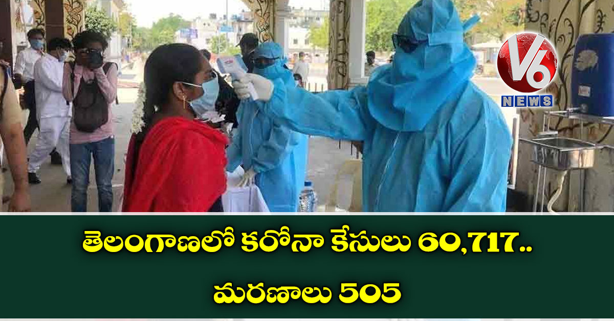 తెలంగాణలో నిన్న(29న) ఒక్కరోజే 1811 పాజిటివ్ కేసులు నమోదవగా 13 మంది చనిపోయారు. దీంతో తెలంగాణలో కరోనా కేసుల సంఖ్య 60,717 కు చేరగా మరణాల సంఖ్య 505 కు చేరింది. ఇందులో 15,640 మంది చికిత్స తీసుకుంటుండగా 44,572 మంది కరోనా నుంచి కోలుకున్నారు. నిన్న(29)న ఒక్కరోజే 18263 మందికి టెస్టులు చేయగా 1811 మందికి పాజిటివ్ వచ్చింది.దీంతో రాష్ట్రంలో ఇప్పటి వరకు కరోనా టెస్టుల సంఖ్య 4,16,202 కు చేరిందని ఆరోగ్య శాఖ బులిటెన్ రిలీజ్ చేసింది.నిన్న నమోదైన కేసుల్లో అత్యధికంగా GHMC లో 521 కేసులు నమోదవ్వగా రంగారెడ్డి జిల్లాలో 289, మేడ్చల్ జిల్లాలో 15కు వరంగల్ అర్బన్ లో 102 కేసులు నమోదయ్యాయి.