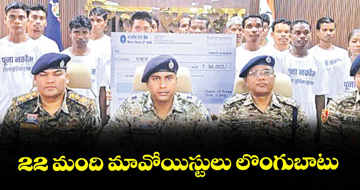 భద్రాచలం, వెలుగు: ఛత్తీస్గఢ్ రాష్ట్రంలోని సుక్మా జిల్లా కేంద్రంలో మంగళవారం 22 మంది మావోయిస్టులు ఎస్పీ కిరణ్ చౌహాన్ ఎదుట సరెండర్ అయ్యారు. వీరంతా మిలీషియా కమాండర్ గోంచే హుంగా ఆధ్వర్యంలో పని చేస్తున్నట్లు ఎస్పీ చెప్పారు. లొంగిపోయిన వారిలో మండకం బండి, మడవి హుండా, మడకం నందా, మడకం రామా, మడకం సోమ్డా, మిడియం ఐతా, మడకం చైతు, మాడవి హుంగా, లక్ష్మీ ముచాకే, గోంచే హుండా, మడవి దూలా, కుంజా కోసా, వేకోవిజ్జా, వేకో హడ్మా, ముచికే సుక్కా, మడవి జోగా, మడకం పాండు, నుప్పా దేవా, బోగాం దస్రు, సలవం లక్మా, జగత్ భీమాలు ఉన్నారు.