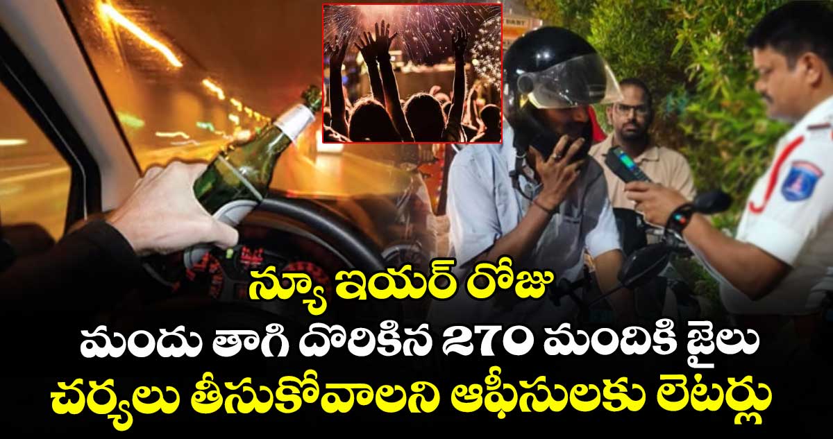 అన్నంత పని చేశారు ట్రాఫిక్ పోలీసులు.. వార్నింగ్ ఇచ్చి లైట్ తీసుకుంటారులే.. న్యూ ఇయర్ రోజు ఎందుకు పట్టుకుంటారు అనుకున్న మందుబాబులకు షాక్ ఇచ్చారు. ఆ విషయాన్ని అంతటితో వదల్లేదు.. న్యూ ఇయర్ స్పెషల్ డ్రంక్ అండ్ డ్రైవ్ లో దొరికిన మందు ప్రియులను జైలుకు తరలించారు. ఒకరా ఇద్దరా అని కాదు.. 100.. 200 కూడా కాదు.. ఏకంగా 270 మంది మందు ప్రియులను జైలుకు పంపించారు. అంతేనా.. డ్రంక్ అండ్ డ్రైవ్ లో దొరికి.. జైలుకు వెళ్లిన వారి వివరాలను వారు వారు పని చేస్తున్న విద్యా సంస్థలకు, ప్రభుత్వ, ప్రైవేట్ ఆఫీసులకు లేఖల ద్వారా తెలియజేశారు.