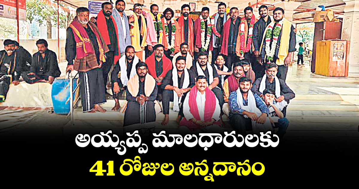 గండిపేట, వెలుగు: బండ్లగూడ జాగీర్ పీరం చెరువులోని దాసాంజనేయ స్వామి ఆలయంలో అయ్యప్ప మాలధారులకు 41 రోజుల పాటు నిర్వహించిన అన్నదానం బుధవారం ముగిసింది. మాజీ కార్పొరేటర్ నాగుల స్రవంతి నరేందర్ ఆధ్వర్యంలో నాలుగో ఏడాది అన్నదాన కార్యక్రమం నిర్వహించారు.