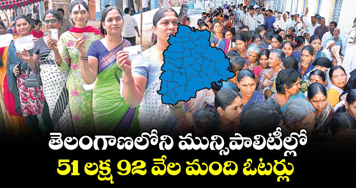 రాష్ట్రంలో పాలకవర్గాల గడువు ముగిసిన 117 మున్సిపాలిటీలు, 6 కార్పొరేషన్లలో మొత్తం 51.92 లక్షల మంది ఓటర్లు ఉన్నట్టు సోమవారం రాష్ట్ర ఎన్నికల సంఘం ప్రకటించింది. ఇందులో 25 లక్షల 37 వేల 136 మంది పురుషులు, 26 లక్షల 54 వేల 453 మంది మహిళా ఓటర్లు, 631 థర్డ్ జెండర్లు ఉన్నట్టుగా వెల్లడించారు. పురుషుల కంటే లక్షా 17 వేల 317 మంది మహిళా ఓటర్లు ఎక్కువగా ఉన్నారు. మున్సిపాలిటీలు, కార్పొరేషన్ల వారీగా గుర్తించిన ఫైనల్ ఓటర్ల లిస్టులను ఆయా బల్దియా కార్యాలయాలతో పాటు జిల్లా కలెక్టరేట్లు, తహసీల్దార్ కార్యాలయా దగ్గర అంటించారు. ఈ నెల 16న ఓటర్ల ఫొటోలతో కూడిన జాబితాలను ప్రకటించనున్నట్లు రాష్ట్ర ఎన్నికల కమిషనర్ రాణి కుముదిని ప్రకటించారు. 2019 మున్సిపల్ యాక్ట్ ప్రకారం ఎన్నికల నిర్వహణకు సర్వం సిద్ధం చేస్తున్నారు. అక్టోబర్ 1, 2025 వరకు అసెంబ్లీ నియోజకవర్గంలో నమోదైన ఓటర్ల జాబితాను అనుసరించి మున్సిపాలిటీలు, కార్పొరేషన్ల పరిధిలోని వార్డుల వారీగా ఓటర్ల జాబితాను రెడీ చేయాలని గత నెల 29న రాష్ట్ర ఎన్నికల కమిషన్ నోటిఫికేషన్ షెడ్యూల్ రిలీజ్ చేసింది. ఎన్నికల కమిషన్ ఆదేశాల మేరకు ఆయా జిల్లాల కలెక్టర్లు, మున్సిపల్ కమిషనర్లు, అధికారులు ఫైనల్ ఓటర్ల జాబితా రెడీ చేసి సోమవారం ఎన్నికల సంఘానికి పంపించారు.