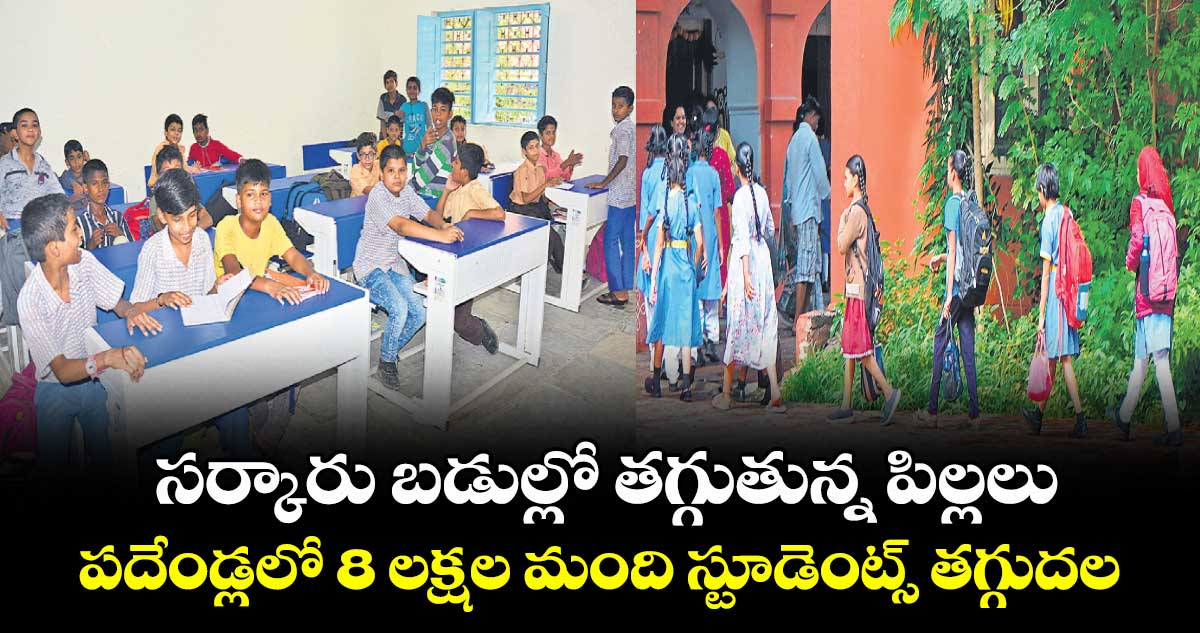 రాష్ట్రవ్యాప్తంగా 2014 –15 విద్యాసంవత్సరంలో 26,114 ప్రభుత్వ, లోకల్బాడీ స్కూళ్లు ఉండగా, వాటిలో 24,85,007 మంది విద్యార్థులు చదువుకునేవారు. కానీ, 2025–26 విద్యా సంవత్సరం నాటికి ఈ సంఖ్య 16.51 లక్షలకు తగ్గిపోయింది. గడిచిన పదేండ్లలో ఏకంగా 8.34 లక్షల మంది పిల్లలు ప్రభుత్వ బడులకు దూరమయ్యారు. సగటున ఏటా లక్ష మందికి పైగా విద్యార్థులు సర్కారు బడిని వదిలి వెళ్తున్నారు. అయినా, అధికారుల్లో మాత్రం చలనం రావడం లేదు. మరోపక్క సర్కారు బడులపై నమ్మకం లేకపోవడం, ఇంగ్లిష్ మీడియంపై మోజుతోనే ఈ సమస్య ఏర్పడిందని విద్యావేత్తలు చెప్తున్నారు. కాంగ్రెస్ ప్రభుత్వం వచ్చాక దశలవారీగా స్కూళ్లలో ఇంగ్లిష్ మీడియం ప్రవేశపెడ్తున్నప్పటికీ సబ్జెక్ట్ బోధించే టీచర్లను సరిపడా నియమించకపోవడం సమస్యగా మారింది. ఇక సర్కారు బడుల్లో ఒకటో తరగతి నుంచి ఇంగ్లిష్ మీడియం ఉండడం, ఎల్కేజీ నుంచే పిల్లలను ప్రైవేట్స్కూళ్లకు పంపుతుండడం అక్కడి నుంచి ఇక్కడికి పిల్లలను ఇక్కడికి తరలించడం సమస్యగా మారిందని టీచర్లు చెప్తున్నారు.