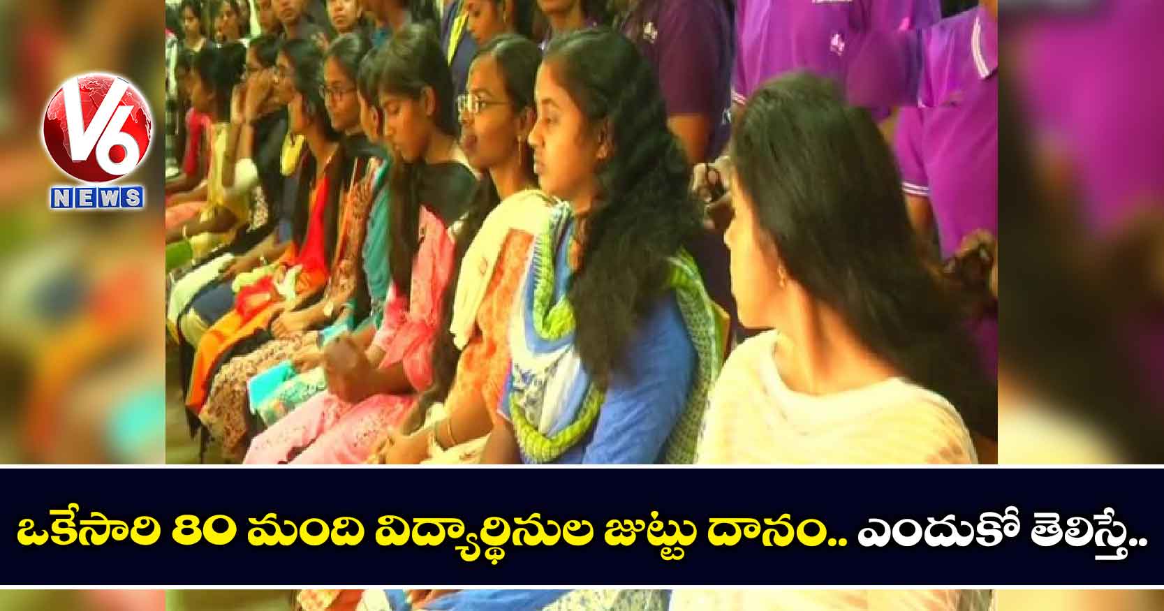 కోయంబత్తూర్లోని ఓ ప్రైవేట్ కాలేజీకి చెందిన 80 మంది విద్యార్థినులు తమ జుట్టు దానం చేయడానికి ముందుకొచ్చారు. వీరంతా ఎందుకు జుట్టు దానం చేస్తున్నారో తెలుసా? క్యాన్సర్ బారినపడి జుట్టు కోల్పోయిన ఆడవాళ్ల కోసం తమ జుట్టు ఇవ్వాలని వీరంతా ఈ నిర్ణయం తీసుకున్నారు. ఈ జుట్టుతో విగ్స్ తయరుచేసి వారికి ఇవ్వవచ్చనేది వారి ఆలోచన.