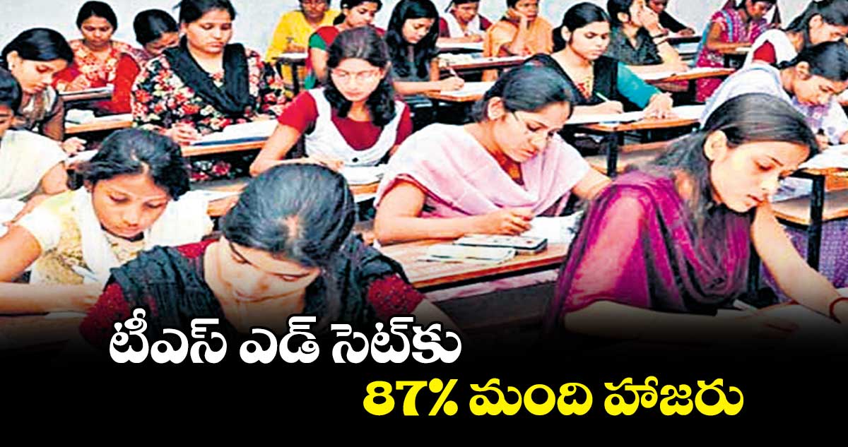 హైదరాబాద్, వెలుగు: రెండేండ్ల బీఈడీ కోర్సులో అడ్మిషన్ల కోసం గురువారం జరిగిన టీఎస్ ఎడ్ సెట్ ఎగ్జామ్ ప్రశాంతంగా ముగిసింది. రాష్ట్రవ్యాప్తంగా 79 పరీక్షా కేంద్రాల్లో.. రెండు సెషన్లలో ఎగ్జామ్ జరిగిందని టీఎస్ ఎడ్ సెట్ కన్వీనర్ మృణాళిని తెలిపారు. మొత్తం 33,879 మందికి గానూ 29,463 మంది స్టూడెంట్లు పరీక్షకు హాజరయ్యారని తెలిపారు. మార్నింగ్ సెషన్ లో 16,321 మందికి 14,633 మంది.. మధ్యాహ్నం సెషన్ లో 16,950 మందికి గానూ 14,830 మంది అటెండ్ అయ్యారని చెప్పారు.