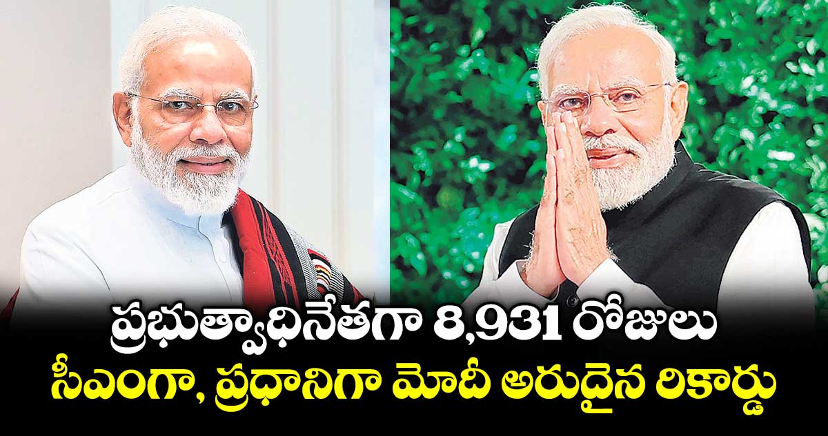 న్యూఢిల్లీ: ప్రధాన మంత్రి నరేంద్ర మోదీ అరుదైన రికార్డు సృష్టించారు. భారత రాజకీయాల్లో అత్యధిక కాలం పదవిలో ఉన్న వ్యక్తిగా ఆయన నిలిచారు. ఇంతకుముందు సిక్కిం మాజీ సీఎం పవన్ కుమార్ చామ్లింగ్ 8,930 రోజులు పదవిలో ఉండగా, మోదీ ఆ రికార్డును బ్రేక్ చేశారు. గుజరాత్ సీఎంగా, ప్రధాన మంత్రిగా మొత్తం 8,931 రోజులు పదవిలో ఉన్న మోదీ.. తన 25 వ ఏట ప్రజాజీవితంలోకి అడుగుపెట్టారు. దేశానికి స్వాతంత్ర్యం వచ్చిన తర్వాత జన్మించిన తొలి ప్రధాన మంత్రి కూడా మోదీయే.. 2014, 2019, 2024 లోక్సభ ఎన్నికల్లో వరుసగా మూడుసార్లు విజయం సాధించి, ప్రజల్లో తిరుగులేని నాయకుడిగా ఎదిగారు. 2001 అక్టోబర్ 7న గుజరాత్ సీఎంగా మోదీ ప్రస్థానం మొదలైంది. ఆ తర్వాత వరుసగా 2007, 2012లలో సీఎంగా పనిచేశారు. అత్యధిక కాలం గుజరాత్కు సీఎంగా పనిచేసిన రికార్డు ఆయన పేరుపైనే ఉంది. ఆ తర్వాత 2014లో మొదటిసారి దేశ ప్రధానిగా ప్రమాణ స్వీకారం చేసి, ప్రస్తుతం కొనసాగుతున్నారు. రెండుసార్లు పూర్తి పదవీ కాలాన్ని ముగించి, వరుసగా మూడోసారి ప్రధానిగా ఎన్నికైన తొలి కాంగ్రెసేతర నేతగా మోదీ నిలిచారు. మరోవైపు, రాజకీయాలతో పాటు డిజిటల్ ప్లాట్ఫారమ్స్లో కూడా ఈ ఏడాది ప్రధాని మోదీ రికార్డులు సృష్టించారు. ఈ నెల ప్రారంభంలో యూట్యూబ్ చానల్ సబ్స్ర్కైబర్ల సంఖ్య 30 మిలియన్లకు చేరుకుంది. ప్రపంచవ్యాప్తంగా కూడా మోదీనే టాప్లో ఉన్నారు.