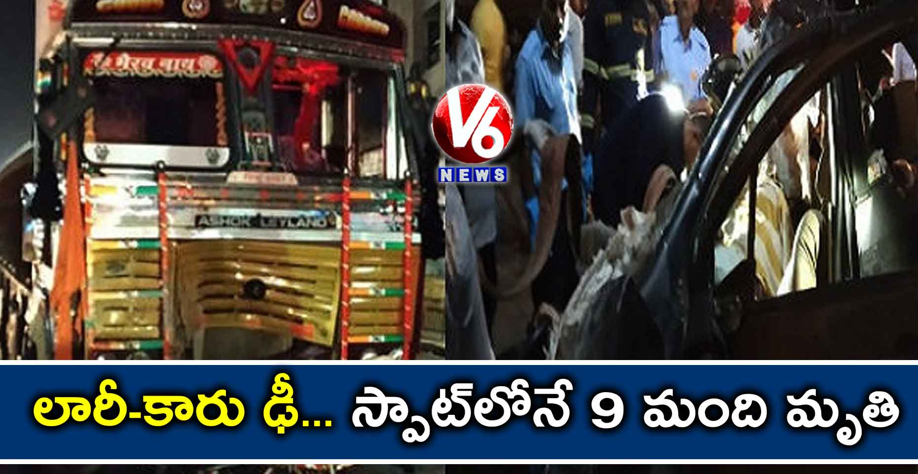 మహారాష్ట్రలో ఘోర రోడ్డు ప్రమాదం జరిగింది. లారీ, కారు ఢీ కొనడంతో 9 మంది స్పాట్ లోనే ప్రాణాలు కోల్పోయారు. పుణె-సోలాపూర్ హైవేపై కడమ్వాక్ వస్తీ దగ్గర ఈ ప్రమాదం జరిగింది. ప్రమాదంలో కారు పూర్తి నుజ్జునుజ్జైంది. చాలా వేగంగా ఢీకొనడం వల్లే మృతుల సంఖ్య పెరిగిందని పోలీసులు చెప్పారు.