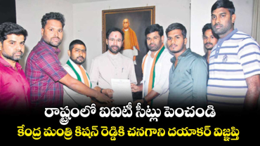 Read Moreరాష్ట్రంలో ఐఐటీ సీట్లు పెంచండి..కేంద్ర మంత్రి కిషన్ రెడ్డికి చనగాని దయాకర్ విజ్ఞప్తి