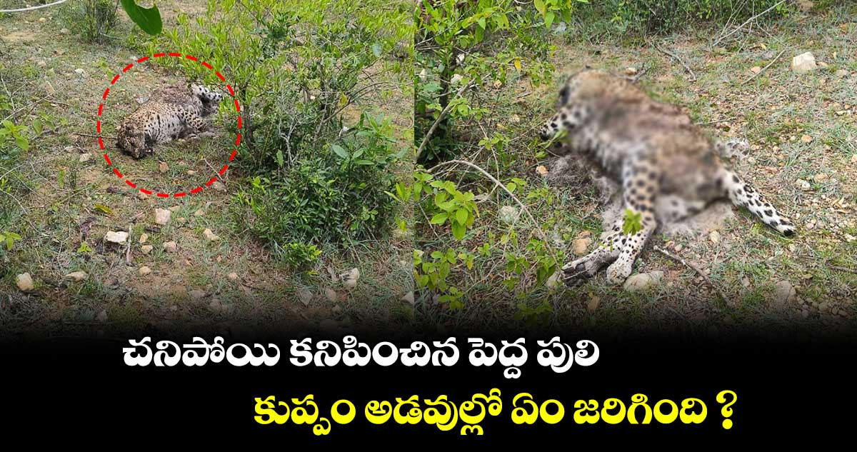 ఏపీలోని చిత్తూరు జిల్లా కుప్పం అటవీ ప్రాంతంలో చిరుత మృతి కలకలం రేపుతుంది . కర్ణలపట్టు అటవీ ప్రాంతంలో పశువుల కాపరులు చిరుత కళేబరాన్ని చూసి అటవీ శాఖ అధికారులకు సమాచారం అందజేశారు. అక్కడికి చేరుకున్న అటవీ సిబ్బంది పంచనామా జరిపి కేసు నమోదు చేశారు.చిరుత మృతదేహం నుండి దుర్వాసన పెద్దఎత్తున రావడంతో వారం ముందు మృతిచెందినట్టు అనుమానాలు వ్యక్తం అవుతున్నాయి. వేటగాళ్ల దాడిలో చిరుత మరణించిందని వారు అనుమానం వ్యక్తం చేశారు.
