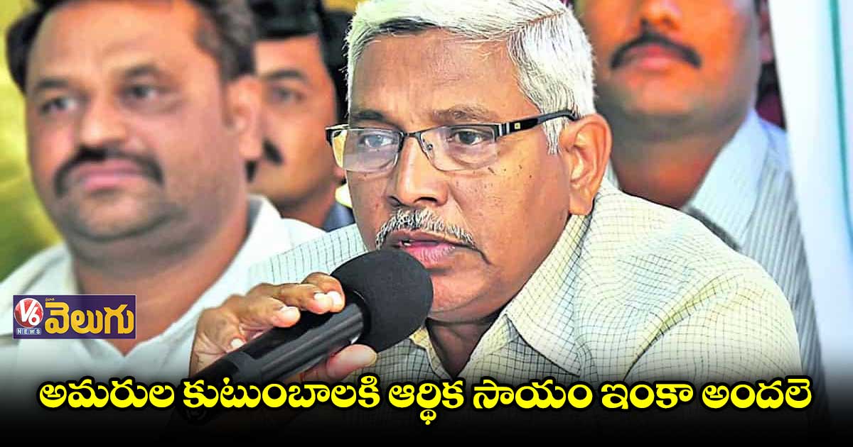 తెలంగాణ అమరుల కుటుంబాలకు ఇప్పటికీ ఆర్థిక సాయం అందలేదని తెలంగాణ జన సమితి అధ్యక్షులు కోదండరాం ఆరోపించారు. స్వరాష్ట్ర సాధనలో అమరులైన వారి సంస్మరణార్థం తెలంగాణ జనసమితి పార్టీ అధ్యక్షులు కోదండరాం గన్ పార్క్ వద్ద అమరులకు నివాళులర్పించారు. తెలంగాణ జనసమితి పార్టీ అధ్వర్యంలో తెలంగాణ ఉద్యమంలో అమరవీరుల ఆత్మ శాంతి చేకూరాలని కోదండరాం బియ్యాన్ని సమర్పించారు. ఇవాళ తెలంగాణలో అమరులైన వారిని స్మరించుకుంటూ ఈ కార్యక్రమాన్ని నిర్వహించామని, వారి కుటుంబాలకు మేలు జరగాలని ఈ కార్యక్రమాన్ని నిర్వహించినట్లు చెప్పారు. ఇప్పటి వరకు అమరుల కుటుంబాలకి ఆర్థిక సాయం అందలేదని ఆరోపించారు. ఆత్మహత్యలకి యత్నించిన వారికి, ఆరోగ్యం నష్టపోయిన వారిని ఆదుకోవాలని డిమాండ్ చేశారు. వారి సంక్షేమం కోసం ఒక సంక్షేమ బోర్డు ఏర్పాటు చేయాలని కోరారు.