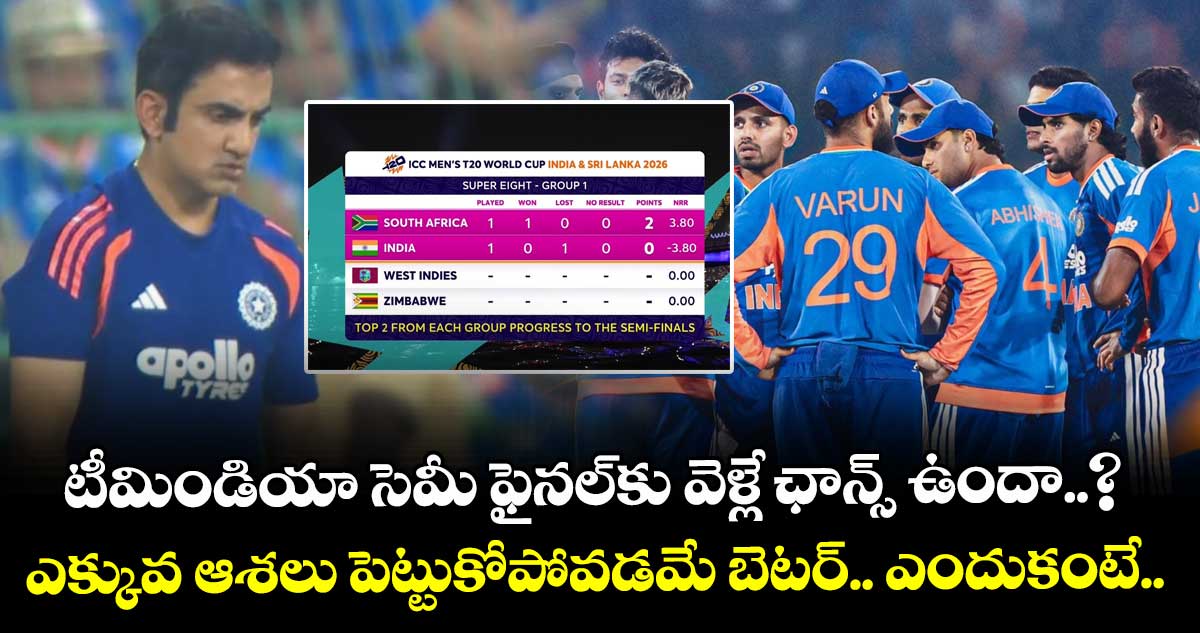 ఒక్కముక్కలో చెప్పాలంటే.. టీమిండియా సెమీ ఫైనల్ ఆశలు సౌతాఫ్రికా జట్టు మీద ఆధారపడి ఉన్నాయి. జింబాబ్వే, వెస్టిండీస్ రెండు జట్లను ఓడిస్తే టీమిండియాకు నాలుగు పాయింట్లు లభిస్తాయి. అయితే.. సౌతాఫ్రికా కూడా రెండు మ్యాచ్ ల్లో గెలిస్తే సఫారీ జట్టుకు ఆరు పాయింట్లు దక్కుతాయి. అప్పుడు టీమిండియా సెమీస్కు ఈజీగా చేరుకోవచ్చు. అలా కాకుండా.. టీమిండియా ఒక మ్యాచ్లో ఓడిపోయినా టీ20 వరల్డ్ కప్ నుంచి నిరాశతో నిష్క్రమించక తప్పని పరిస్థితి. సౌతాఫ్రికా చేతిలో టీమిండియా ఓడిపోవడం వల్లే ఇన్ని ఈక్వెషన్స్ మధ్య సెమీస్ ఆశలు చిక్కుకుపోయాయి.