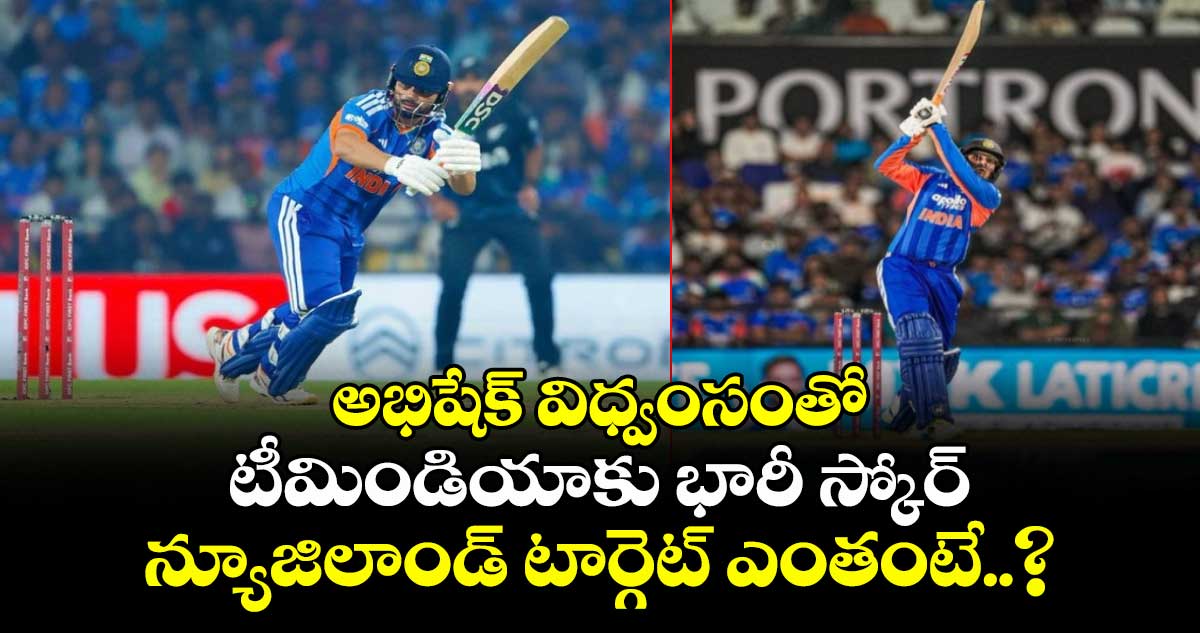 న్యూజిలాండ్ తో జరుగుతున్న తొలి టీ20 టీమిండియా బ్యాటింగ్ లో దుమ్ములేపింది. నాగ్ పూర్ వేదికగా బుధవారం (జనవరి 21) విదర్భ క్రికెట్ అసోసియేషన్ స్టేడియంలో జరుగుతున్న ఈ మ్యాచ్ లో అభిషేక్ శర్మ విధ్వంసంతో ఇండియా నిర్ణీత 20 ఓవర్లలో 7 వికెట్ల నష్టానికి 238 పరుగులు చేసింది. ఓపెనర్ అభిషేక్ శర్మ కేవలం 35 బంతుల్లోనే 5 ఫోర్లు, 8 సిక్సర్లతో 84 పరుగులు చేసి నెక్స్ట్ లెవల్ ఇన్నింగ్స్ ఆడాడు. కెప్టెన్ సూర్యకుమార్ యాదవ్ 32 పరుగులు చేసి రాణించాడు. న్యూజిలాండ్ బౌలర్లలో డఫీ, జెమీసన్ తలో రెండు వికెట్లు తీసుకున్నారు. సోది, క్లార్క్, సాంట్నర్ లకు తలో వికెట్ దక్కింది.
