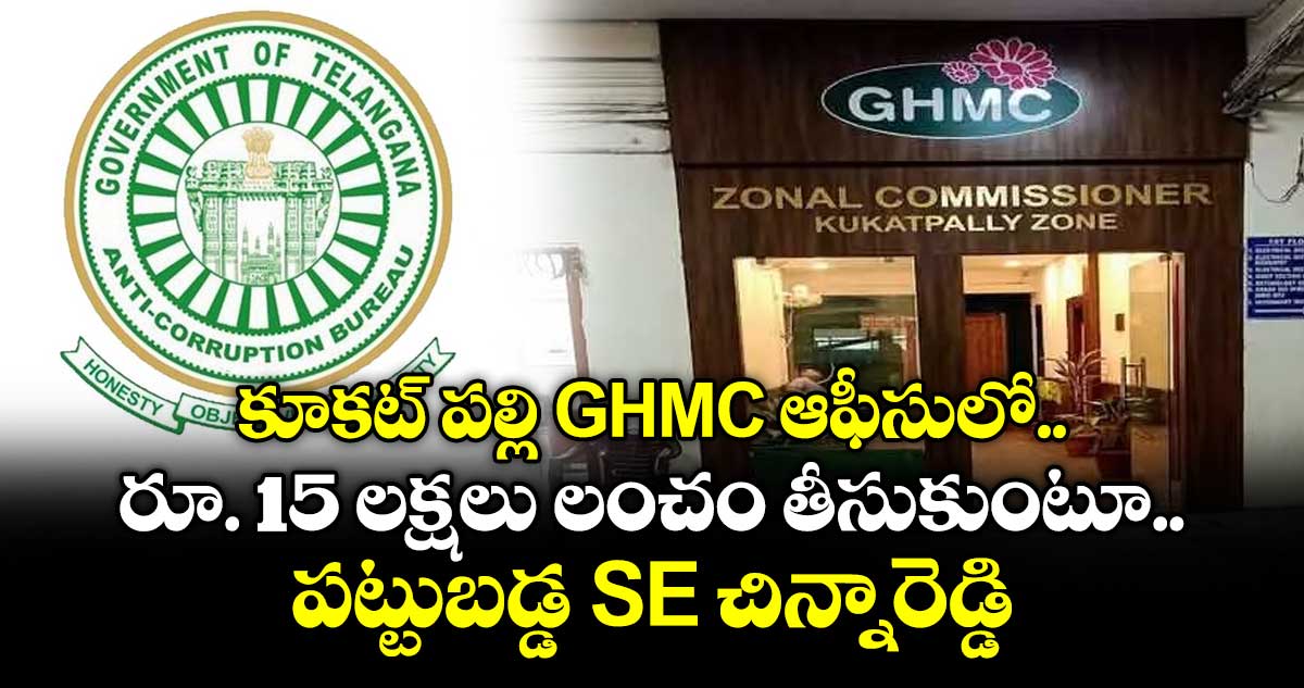 కూకట్ పల్లి GHMC జోనల్ ఆఫీసులో ఆకస్మిక తనిఖీలు నిర్వహించారు ఏసీబీ అధికారులు. బుధవారం ( ఫిబ్రవరి 4 ) జరిగిన ఈ తనిఖీల్లో రూ. 15 లక్షలు లంచం తీసుకుంటూ ఏసీబీకి రెడ్ హ్యాండెడ్ గా పట్టుబడ్డారు SE చిన్నారెడ్డి. టెండర్ విషయంలో చిన్నారెడ్డి లంచం డిమాండ్ చేయడంతో ఏసీబీని ఆశ్రయించాడు బాధితుడు. బాధితుడి ఫిర్యాదుతో రంగంలోకి దిగిన ఏసీబీ అధికారులు ఇవాళ కూకట్ పల్లి GHMC జోనల్ ఆఫీసుపై దాడులు నిర్వహించి చిన్నారెడ్డిని రెడ్ హ్యాండెడ్ గా పట్టుకున్నారు.