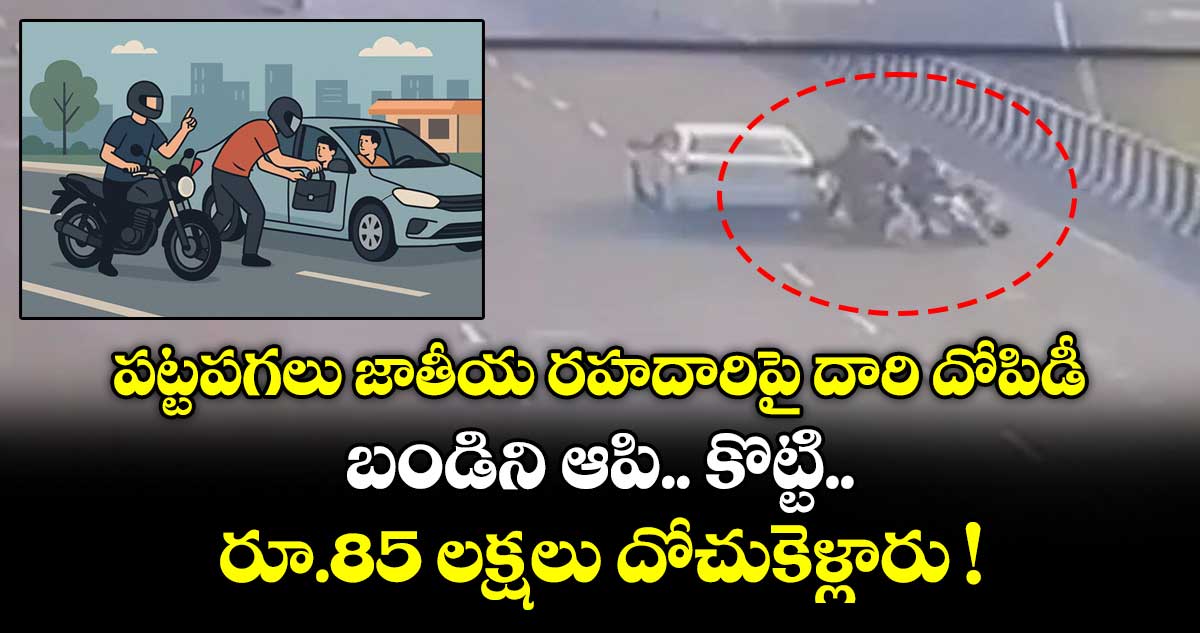 షాకింగ్.. వెరీ వెరీ షాకింగ్. అస్సలు ఊహించని విధంగా.. పట్టపగలు.. జాతీయ రహదారిపై జరిగిన ఈ దారి దోపిడీ అవాక్కయ్యేలా చేసింది. 2025, డిసెంబర్ 15వ తేదీ జరిగిన ఈ ఘటనకు సంబంధించి.. పోలీసులు విడుదల చేసిన ఊహా చిత్రాల్లోని వ్యక్తులను పట్టిస్తే 50 వేల రూపాయల రివార్డ్ ప్రకటించటంతో.. ఈ ఘటన వెలుగులోకి వచ్చింది. పూర్తి వివరాల్లోకి వెళితే..