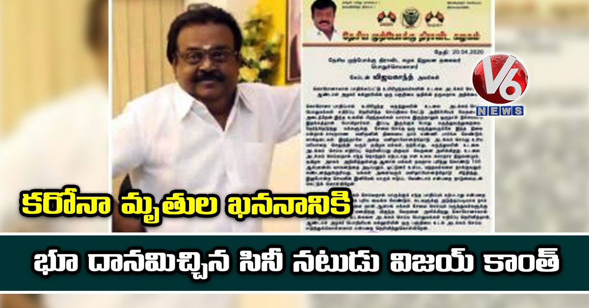 కరోనా బారిన పడి చనిపోయిన వారి ఖననం కోసం తమిళ సీనియర్ నటుడు విజయ్ కాంత్ భూ దానం చేశారు. కరోనాతో చనిపోయిన వారిని ఖననం చేసేందుకు ఆ స్థలాన్ని వాడుకోవచ్చని ఆయన ప్రకటించారు. కరోనా వైరస్తో చనిపోయిన వారిని ఖననం చేస్తే వైరస్ వ్యాప్తి చెందదని, ఈ విషయంపై ప్రజల్లో అవగాహన తీసుకురావాలని విజయ్కాంత్ కోరారు.