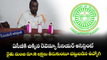 Read Moreఏసీబీకి చిక్కిన రెవెన్యూ సీనియర్ అసిస్టెంట్ ..రైతు నుంచి రూ.2 లక్షలు తీసుకుంటూ పట్టుబడిన ఉద్యోగి